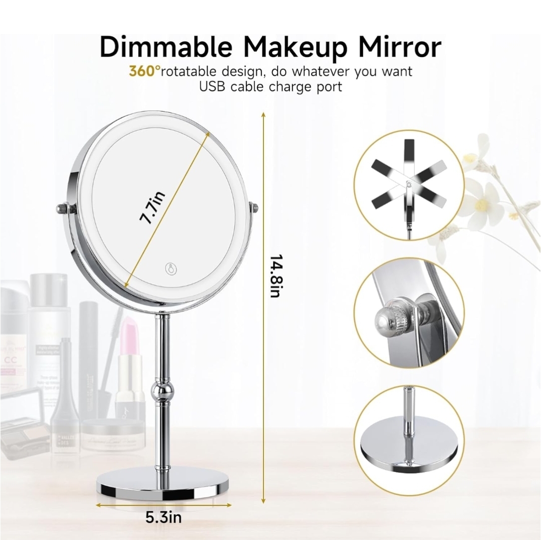 Ending On: 25/01/2026 07:04 Preview Time: 01:45 PMLighted Makeup Mirror with Brighter Lights,1x/10xTrue HD Magnifying Tabletop Vanity Mirror with Touch Control, 360°Rechargeable Double Sided Mirror with 3 Colors Dimmable Lights