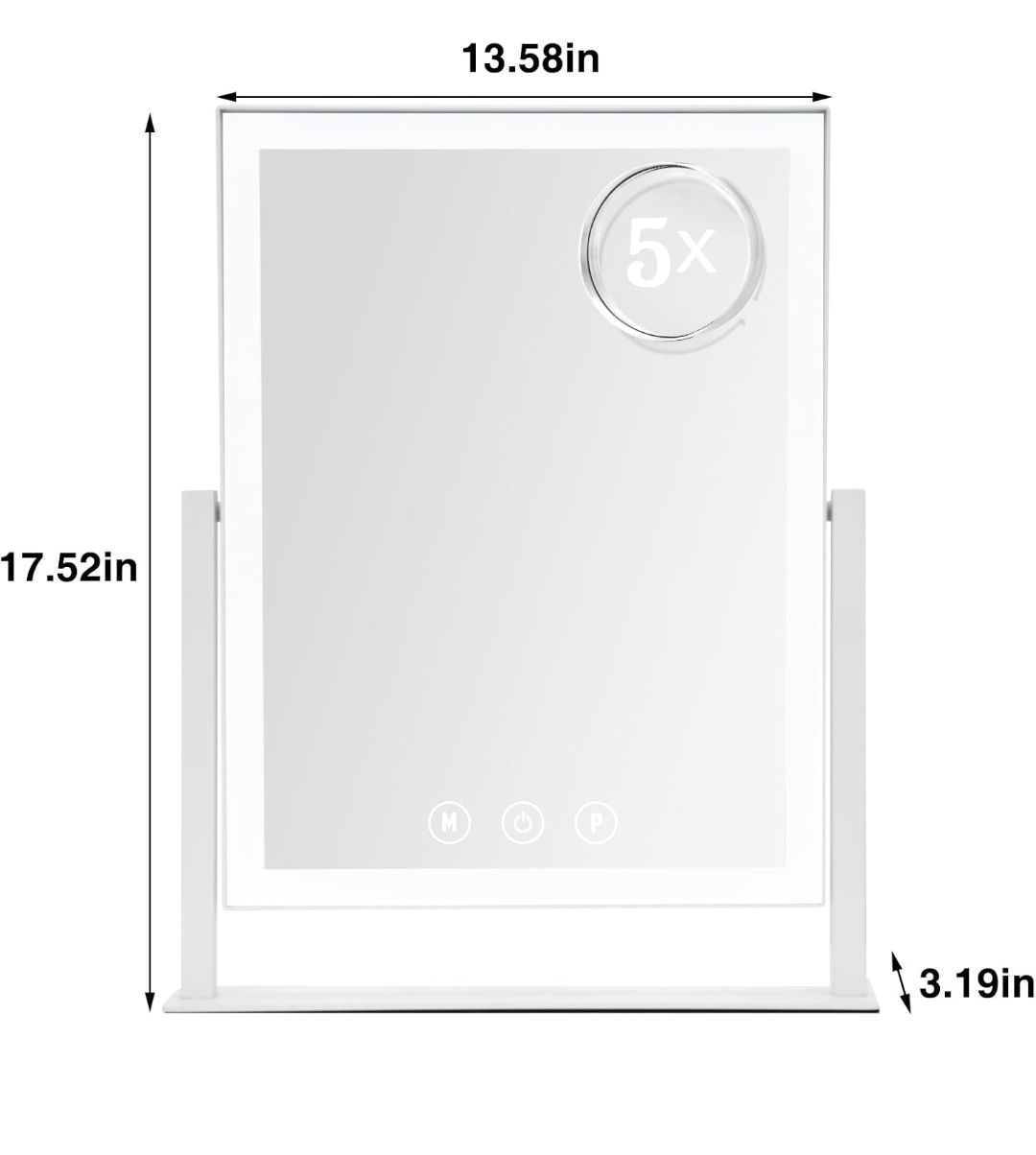 Ending On: 25/01/2026 07:04 Preview Time: 02:42 PMLighted Makeup Mirror, Hollywood Vanity Mirror with 5X Magnification Mirror, 360°Rotation Touch Control, 3 Color Lighting for Desks Bedroom Dressing Room, Large