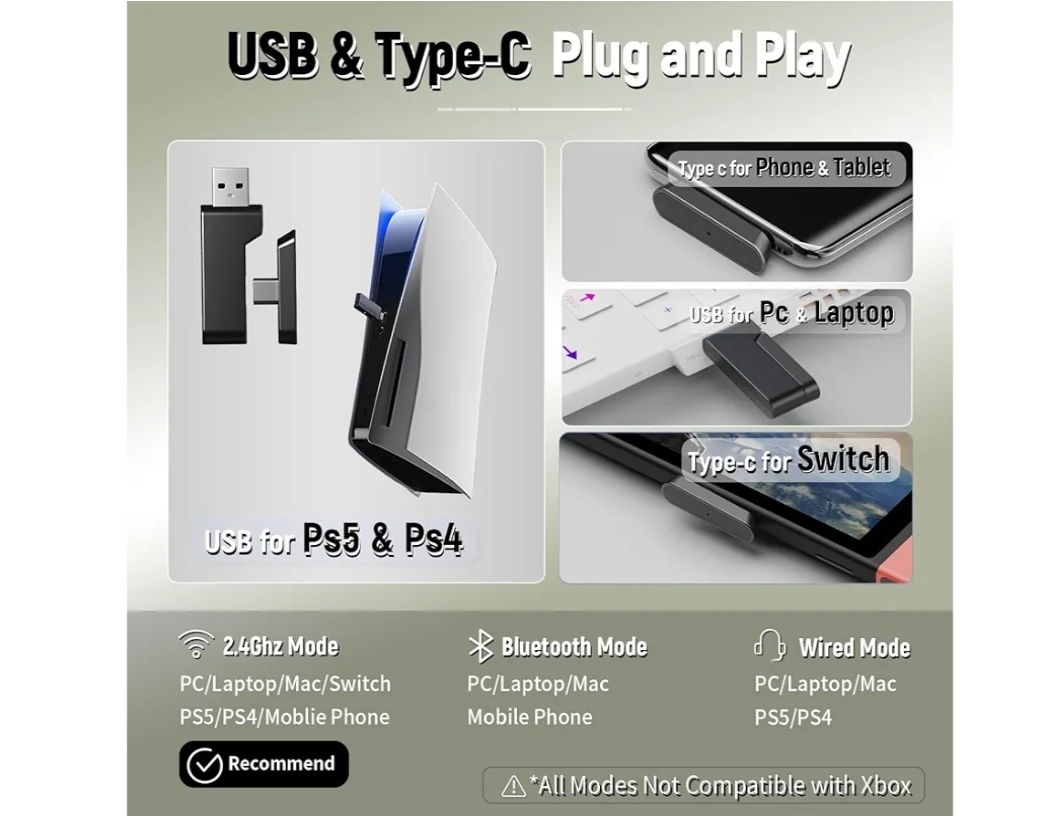 Ending On: 25/01/2026 07:04 Preview Time: 03:54 PMWireless Gaming Headset for Ps5, Ps4, PC, Gaming Headphones with Flip Mic and USB-A & USB-C Transmitter, 40Hr Battery Bluetooth Headset for Mobile, Mac, Laptop