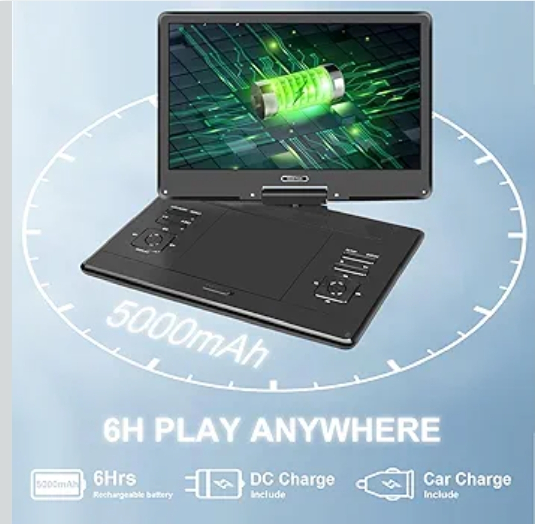 Ending On: 25/01/2026 07:05 Preview Time: 04:17 PM16.9" Portable DVD Player with 14.1’’ HD Swivel Screen, 6Hrs Play, DVD Player Portable with Dual Speaker, Last Memory, Support SYNC TV/USB/SD Card, Play All Discs Format Except Blu-ray, Black