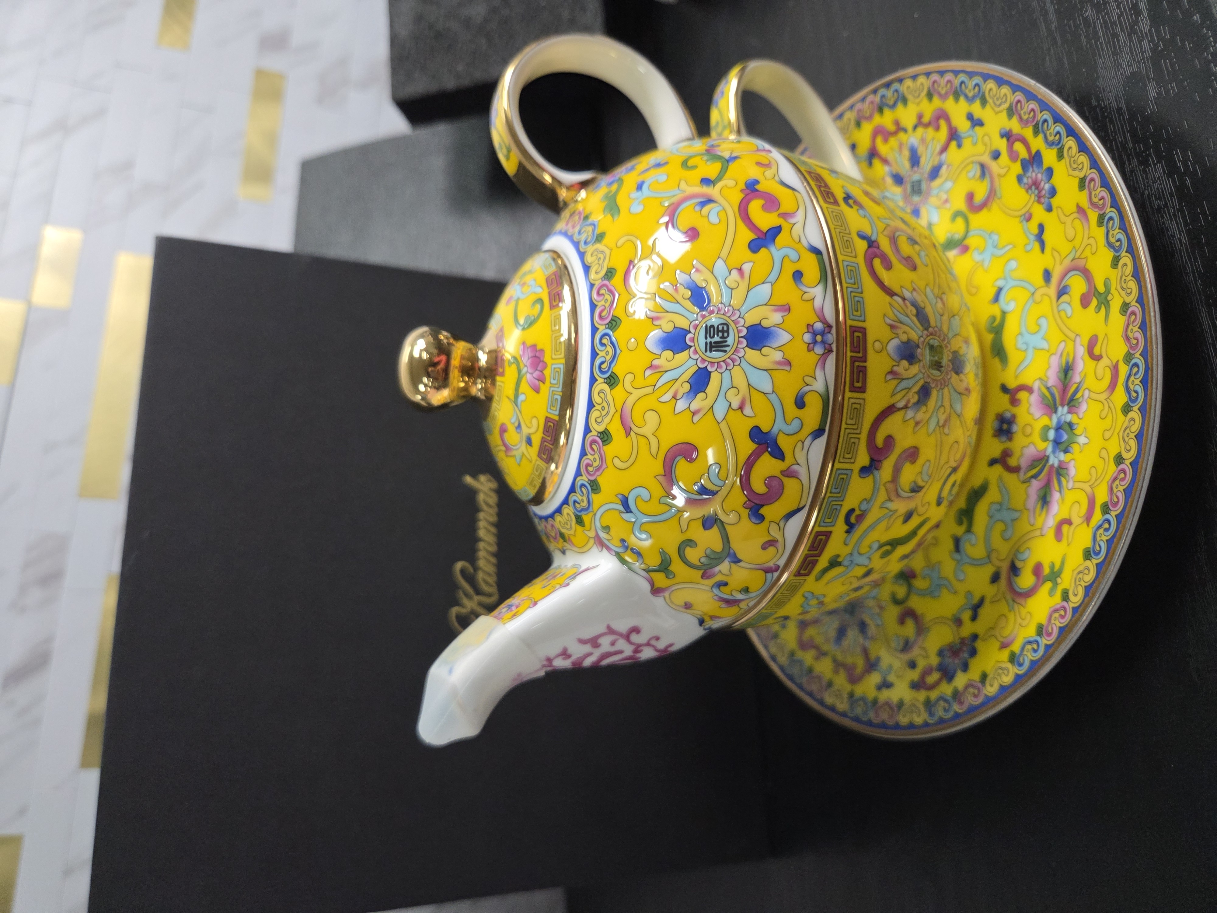 Ending On: 25/01/2026 07:06 Preview Time: 05:14 PMTea for One, Porcelain Teapot and Cup Set, Vintage Tea Pot and Saucers Set, Ceramic Tea Set for Tea Party, Office and Home, Yellow Tea Cups and Saucer Set for Coffee, Cappuccino, Tea