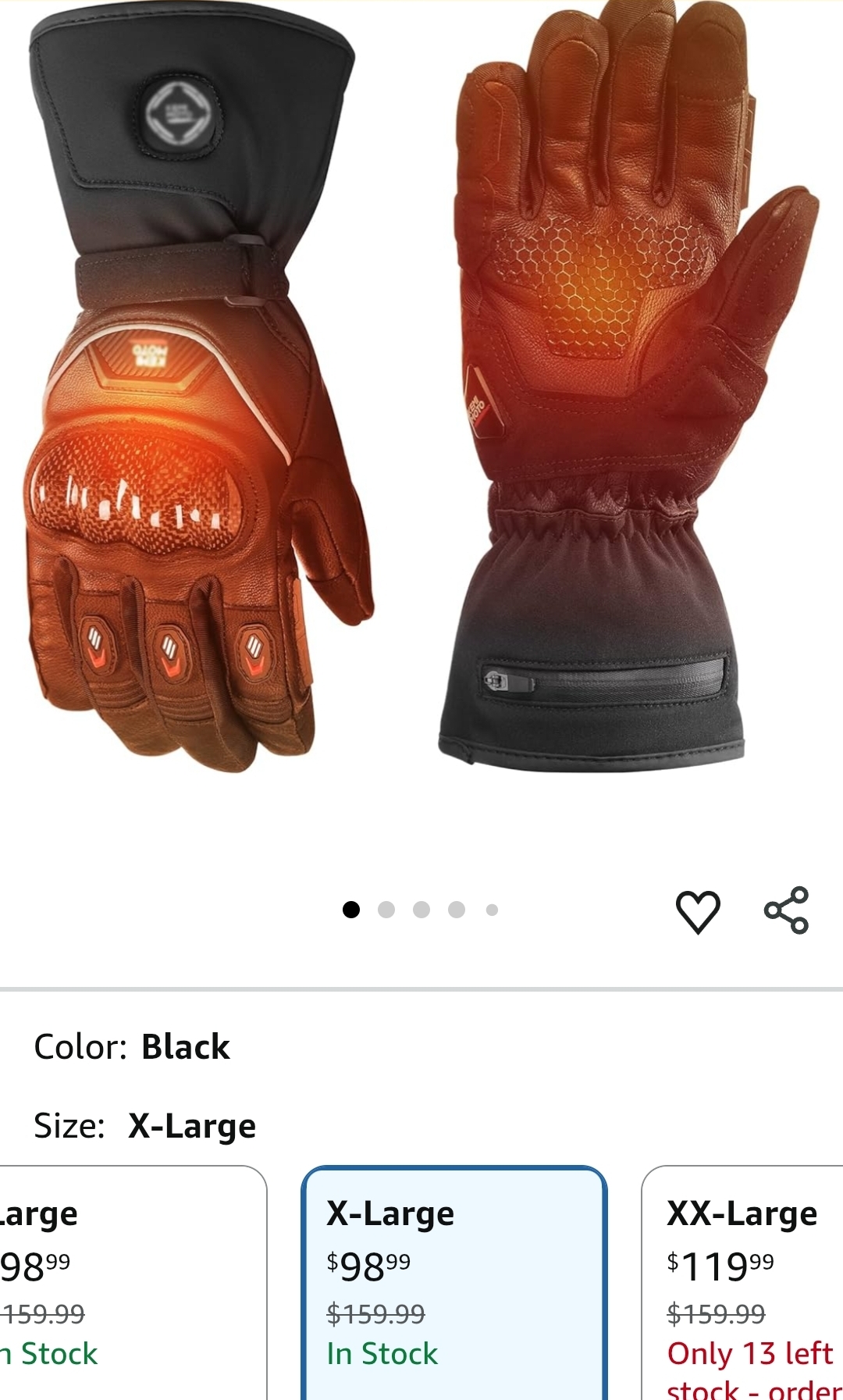 Ending On: 01/02/2026 07:19 Preview Time: 05:11 PMKEMIMOTO Heated Motorcycle Gloves for Men with Hard Protective Shields, Carbon Nanotube Heating Gloves, 7.4V 3000mAh Rechargeable Battery, Waterproof, Windproof, Touchscreen Compatible