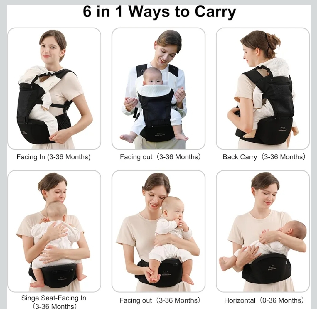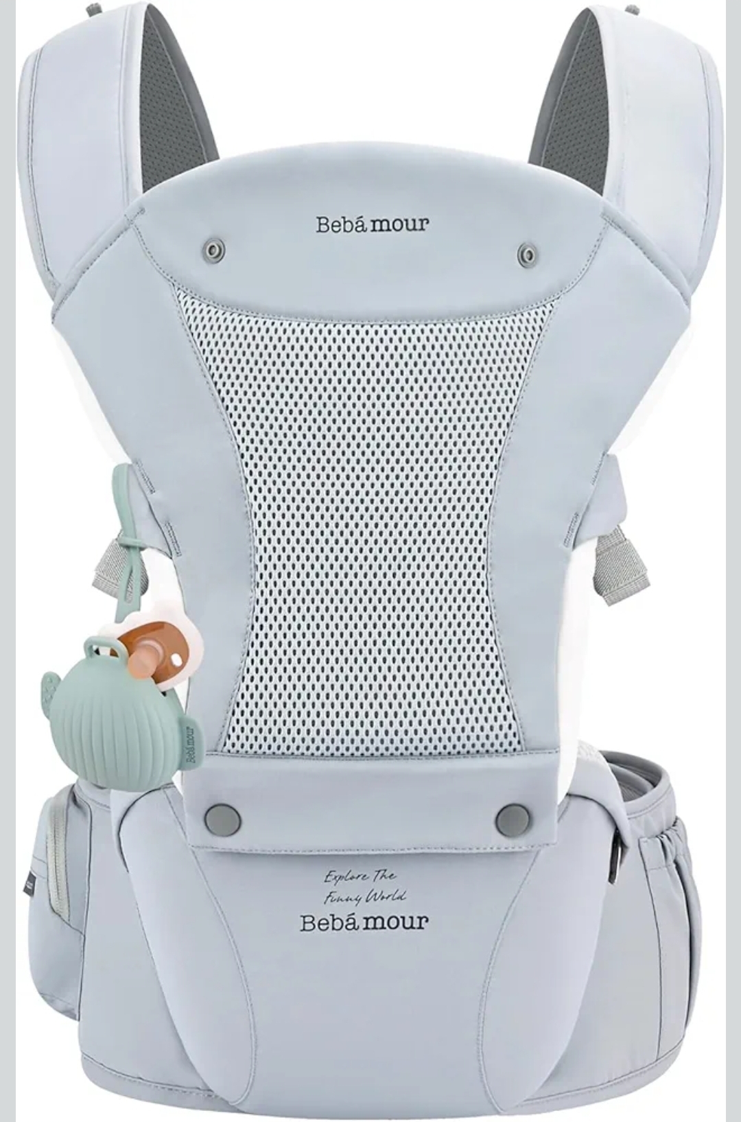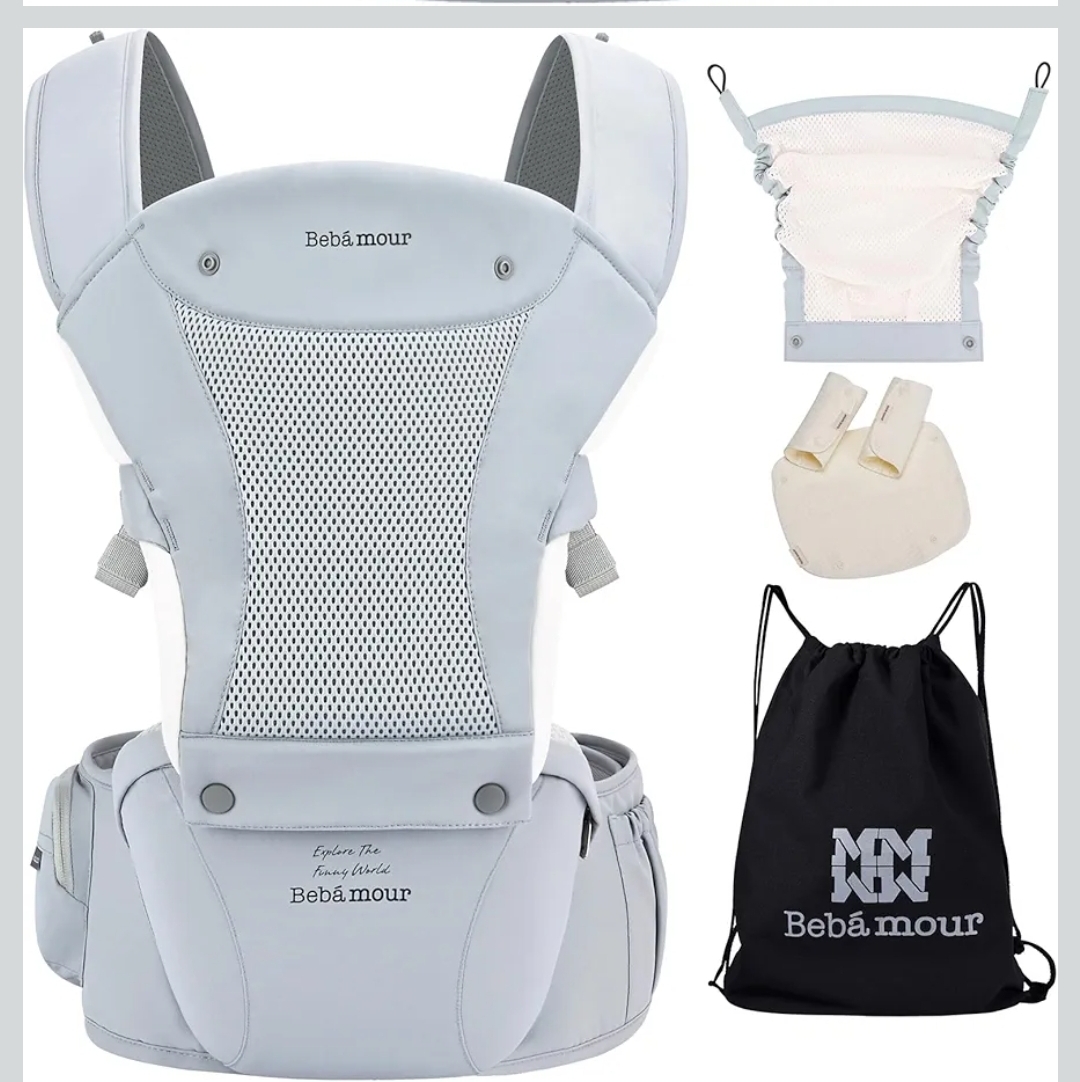 Ending On: 01/02/2026 07:20 Preview Time: 08:11 PMBebamour Baby Carrier with Hip Seat,All-Position Breathable Mesh Hip Seat & Carrier 0-36Months with Head Hood, 3 PCS Teething Pads, Waist Extender,Storage Bag & Pacifier Case (Blue)