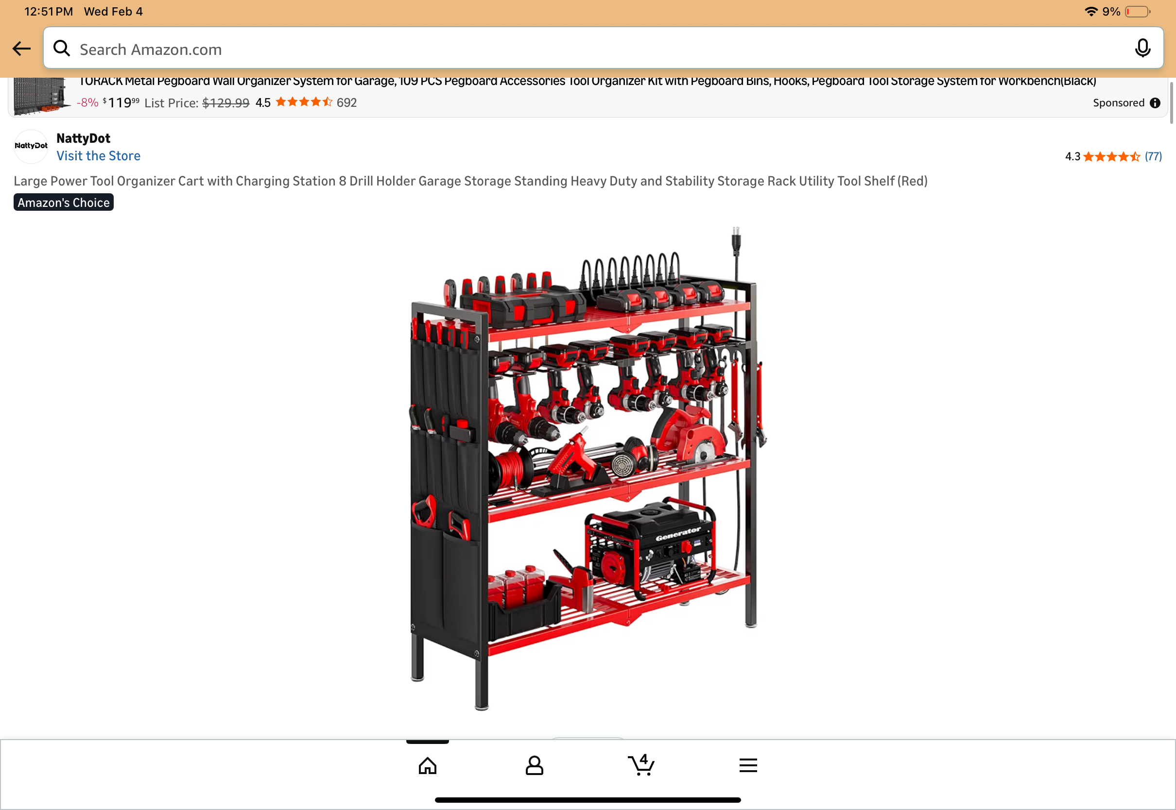 Power Tool Organizer Cart With 2 Side Organizer Baskets #A19
