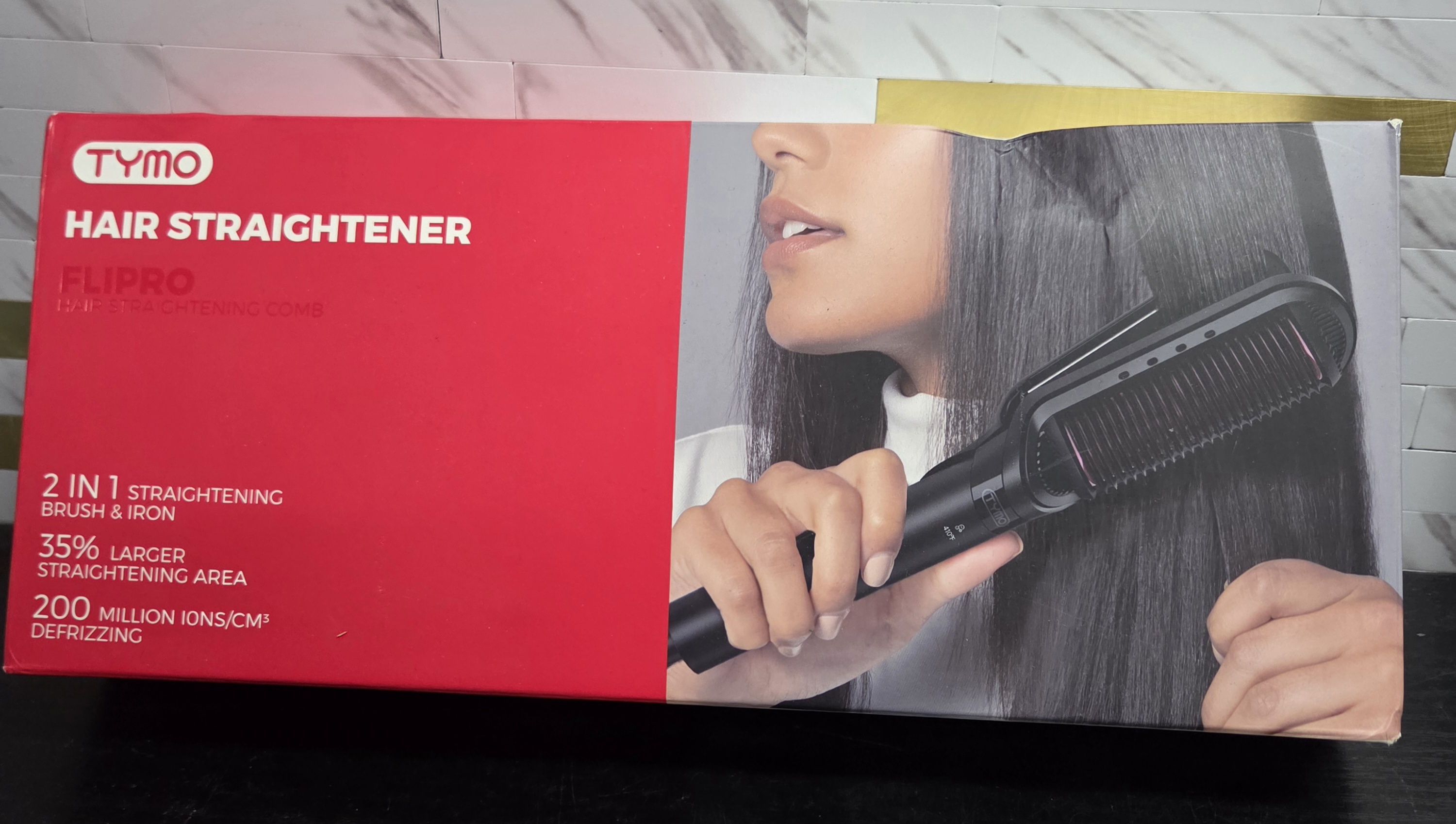 TYMO Flat Iron Hair Straightener Brush 2 in 1, 200M Ions Hair Straighteners for Women, Ceramic Dual Voltage Straightening Hot Comb for Anti-Frizz Straights, Waves, Curls, 3X Less Heat Damage, Black