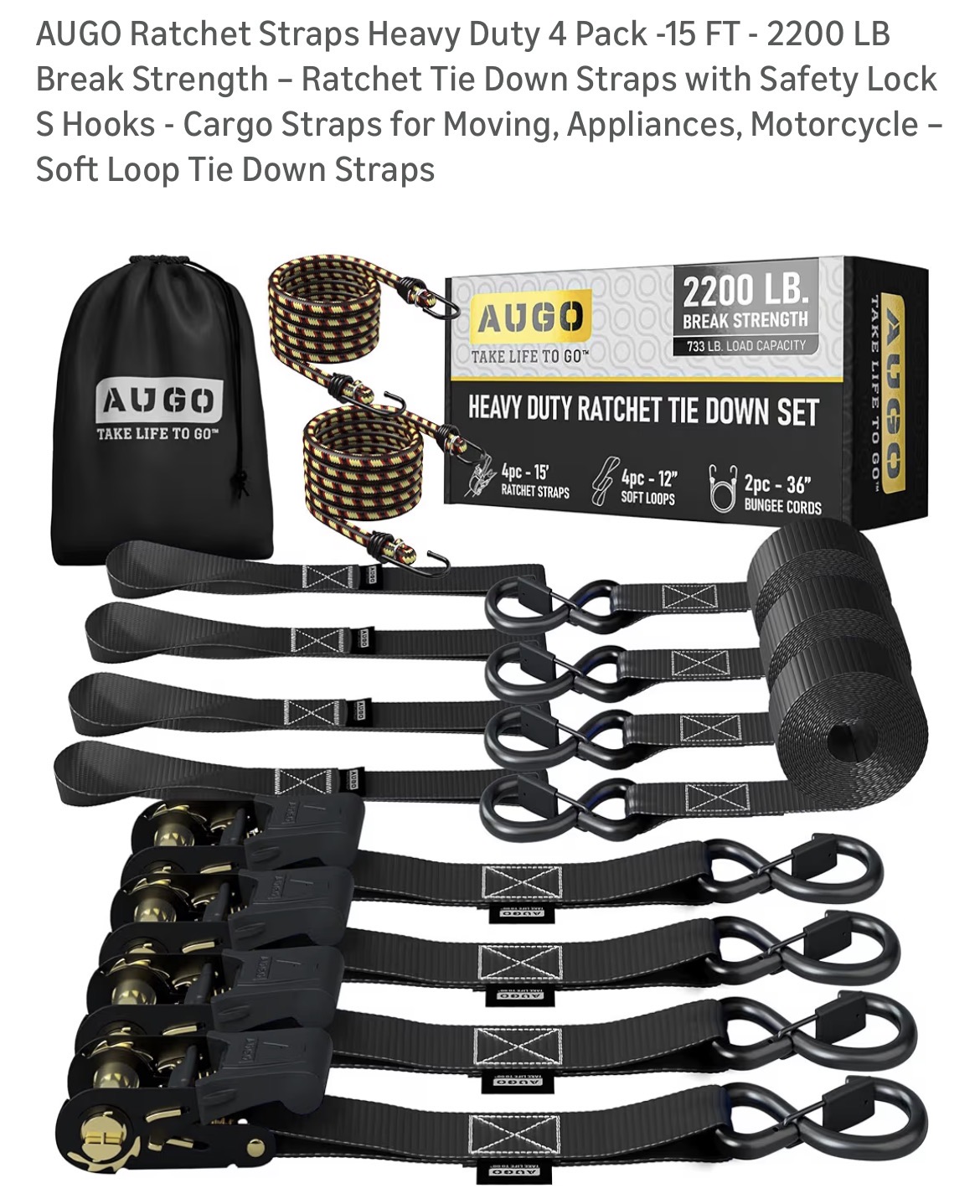 AUGO Ratchet Straps Heavy Duty 4 Pack -15 FT #D43