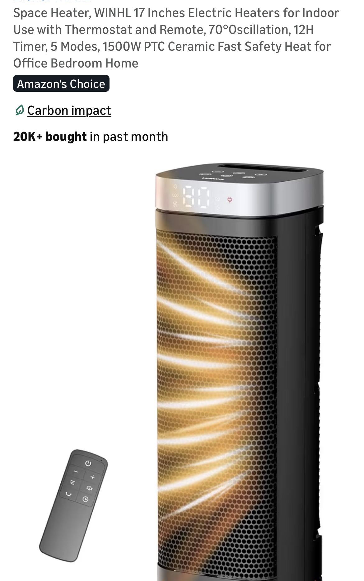 Space Heater, WINHL 17 Inches Electric Heaters for Indoor Use #D49