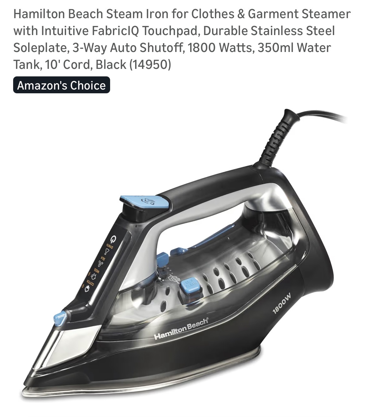 Hamilton Beach Steam Iron for Clothes & Garment Steamer #D63