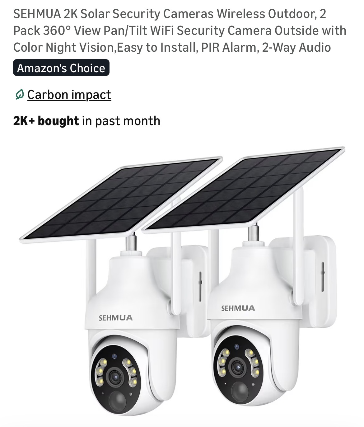 SEHMUA 2K Solar Security Cameras Wireless Outdoor #D66