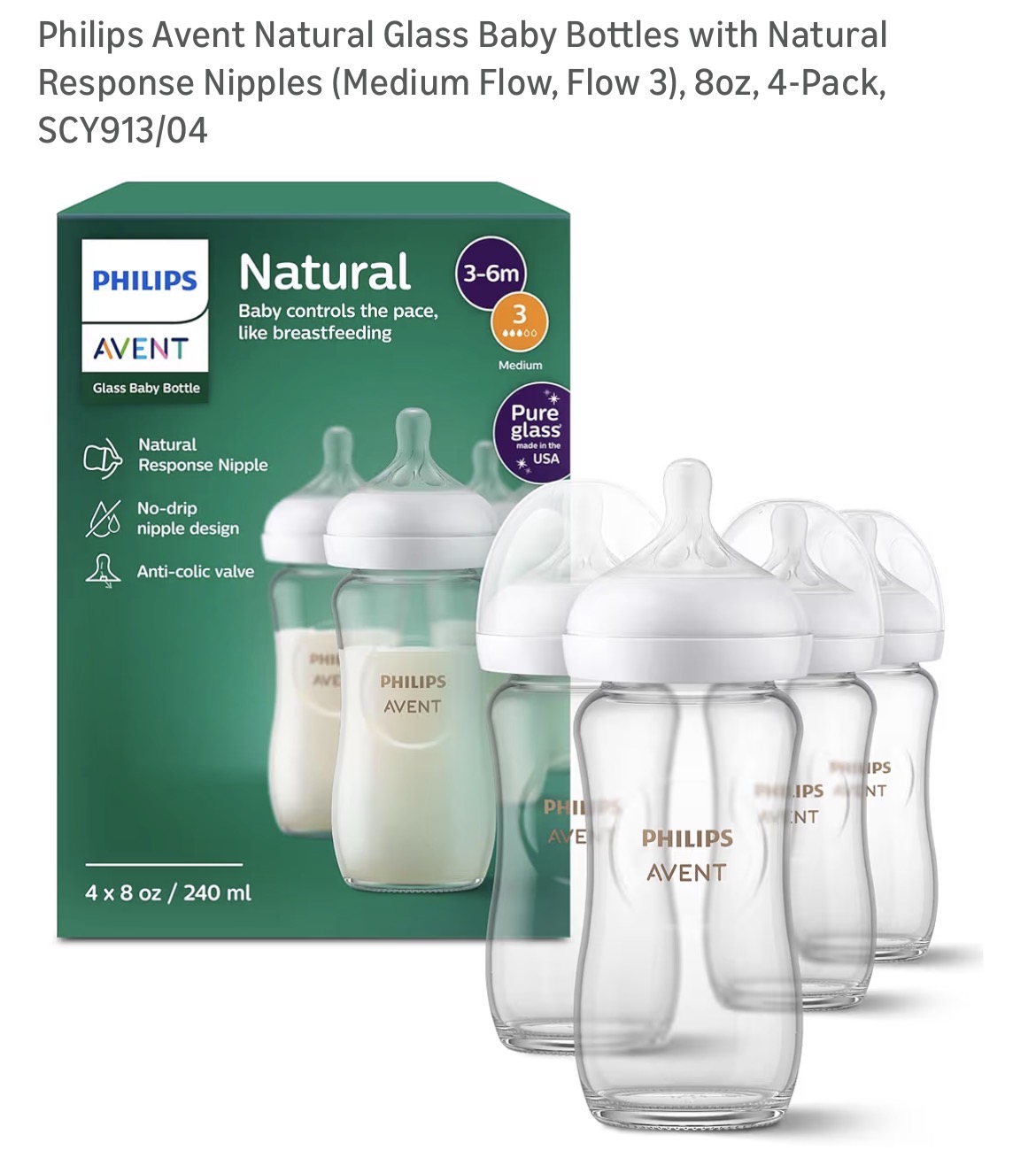 Philips Avent Natural Glass Baby Bottles with Natural Response Nipples #D78