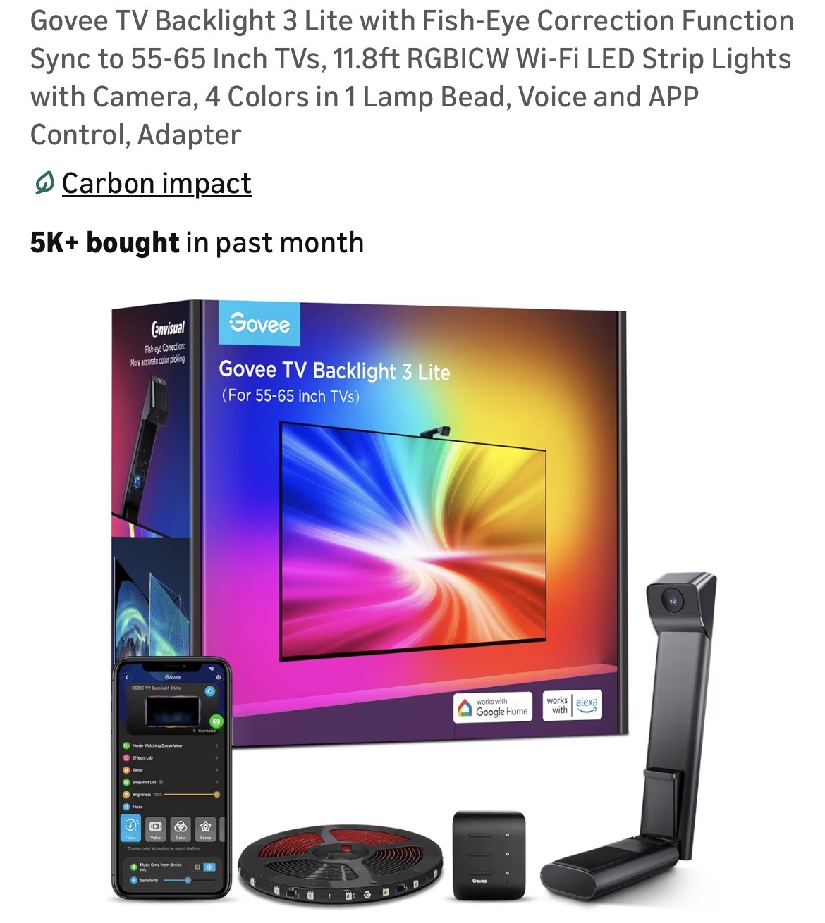 Govee TV Backlight 3 Lite with Fish-Eye Correction Function Sync to 55-65 Inch TVs #D82