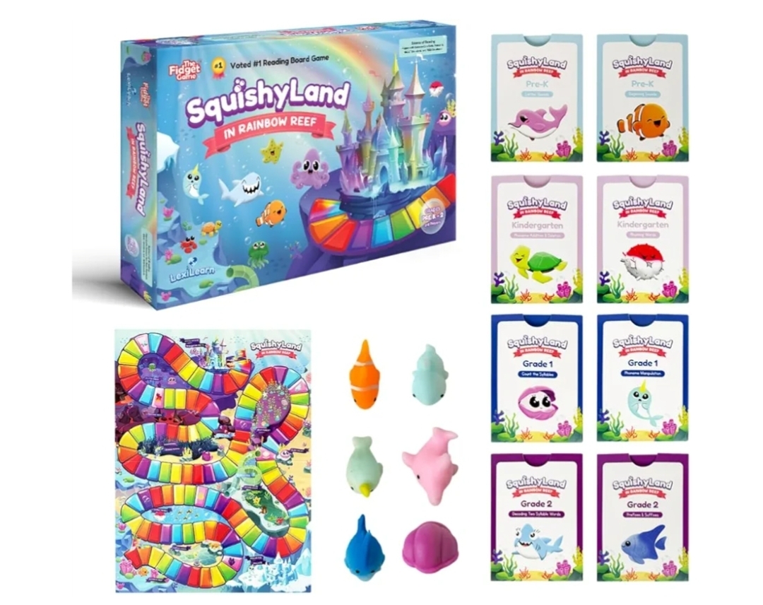 Ending On: 22/02/2026 07:22 Preview Time: 08:48 PMThe Fidget Game SquishyLand in Rainbow Reef - Educational & Phonics Learning Activities for Children in Pre-K to 2nd Grade - Mochi Squishy Toys Set with Board Game (2-6 Players) & Card Packs Included
