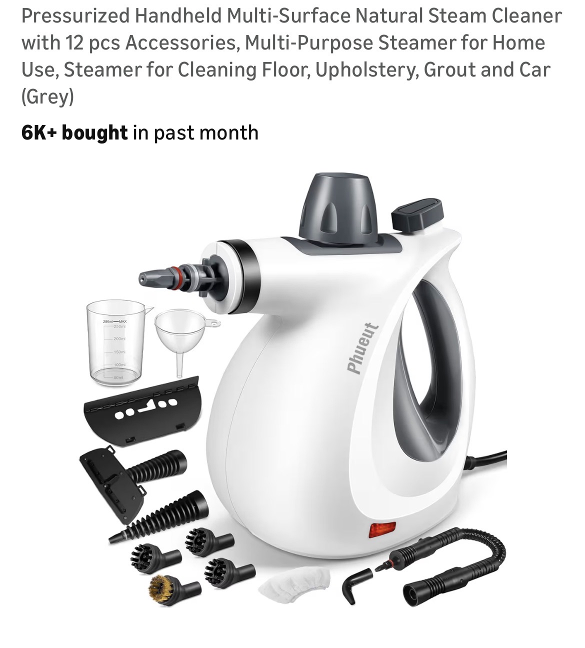 Pressurized Handheld Multi-Surface Natural Steam Cleaner with 12 pcs Accessories #D92