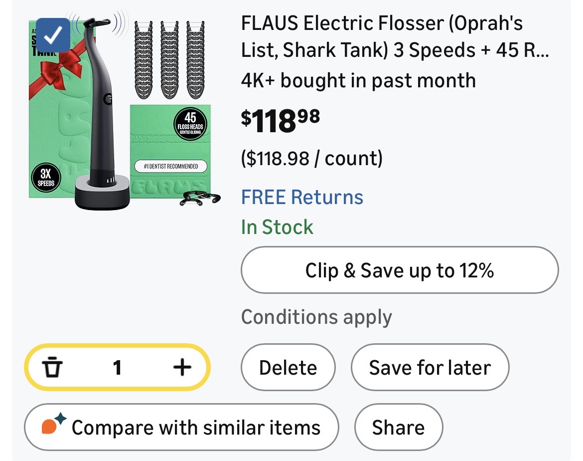 FLAUS Electric Flosser (Oprah's List, Shark Tank) 3 Speeds + 45 Refill Heads #D138