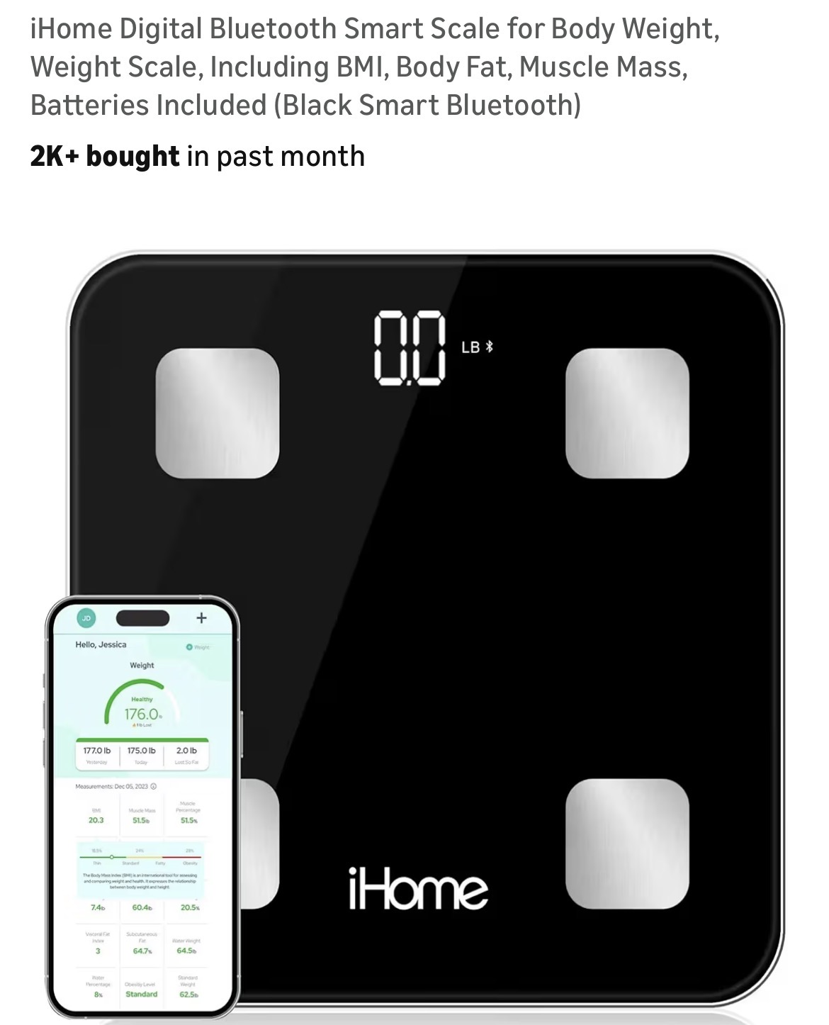 iHome Digital Bluetooth Smart Scale for Body Weight #D125