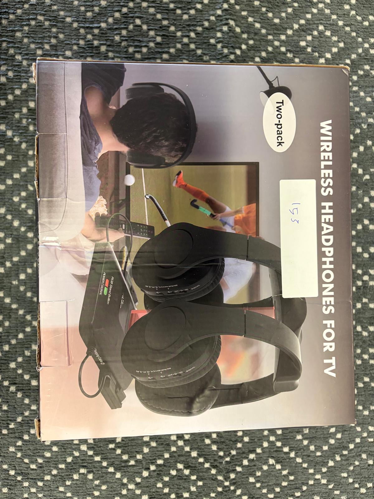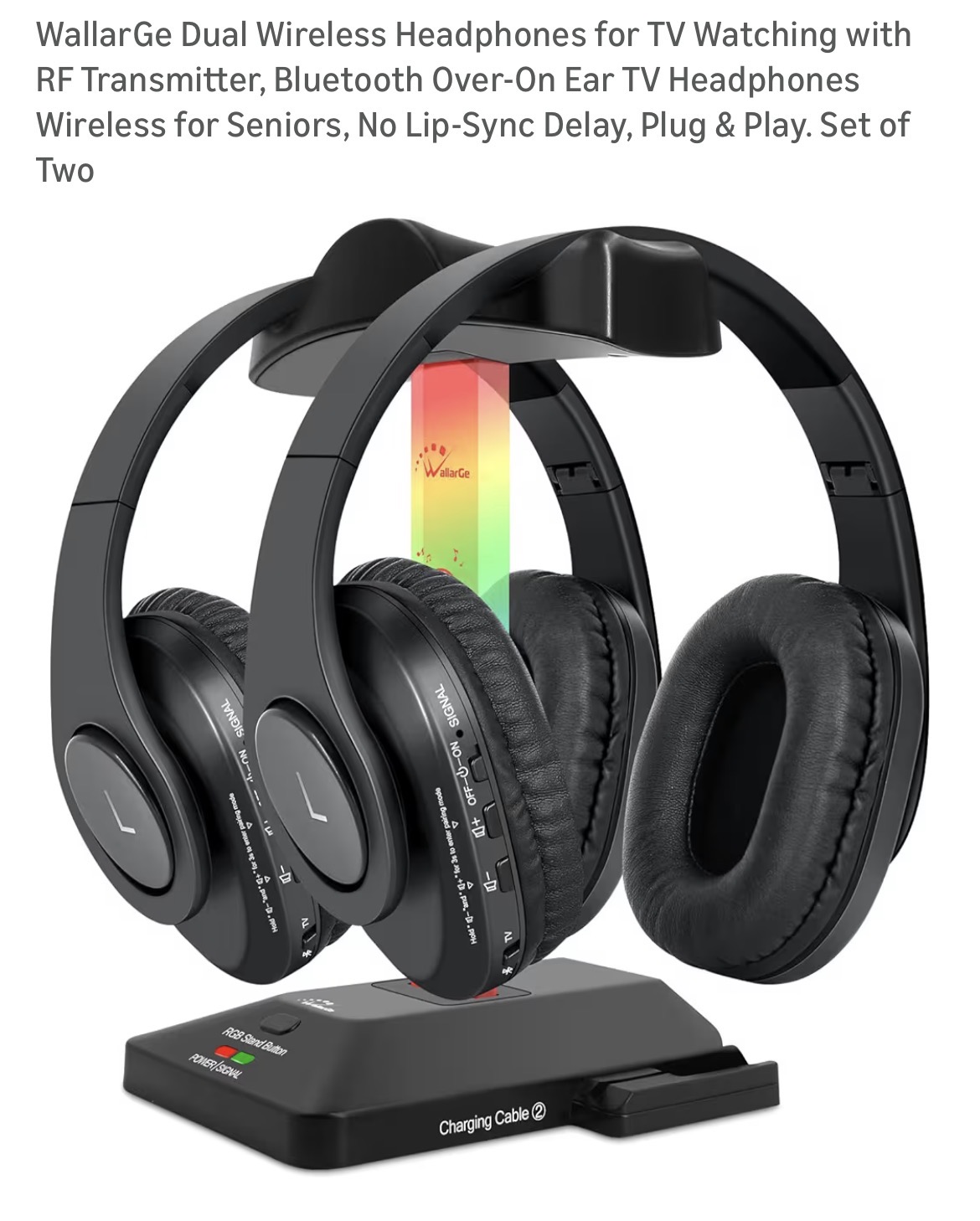 WallarGe Dual Wireless Headphones for TV Watching with RF Transmitter #D153