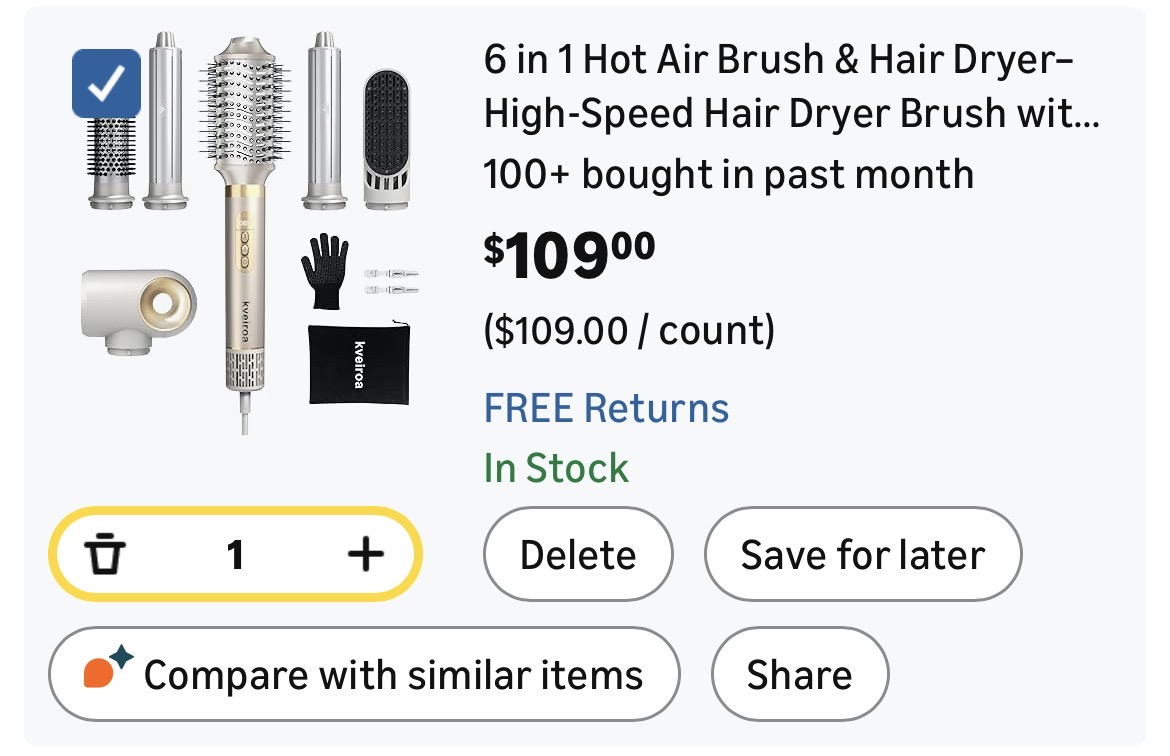 6 in 1 Hot Air Brush & Hair Dryer–High-Speed Hair Dryer Brush with Auto Wrap Curlers #D157