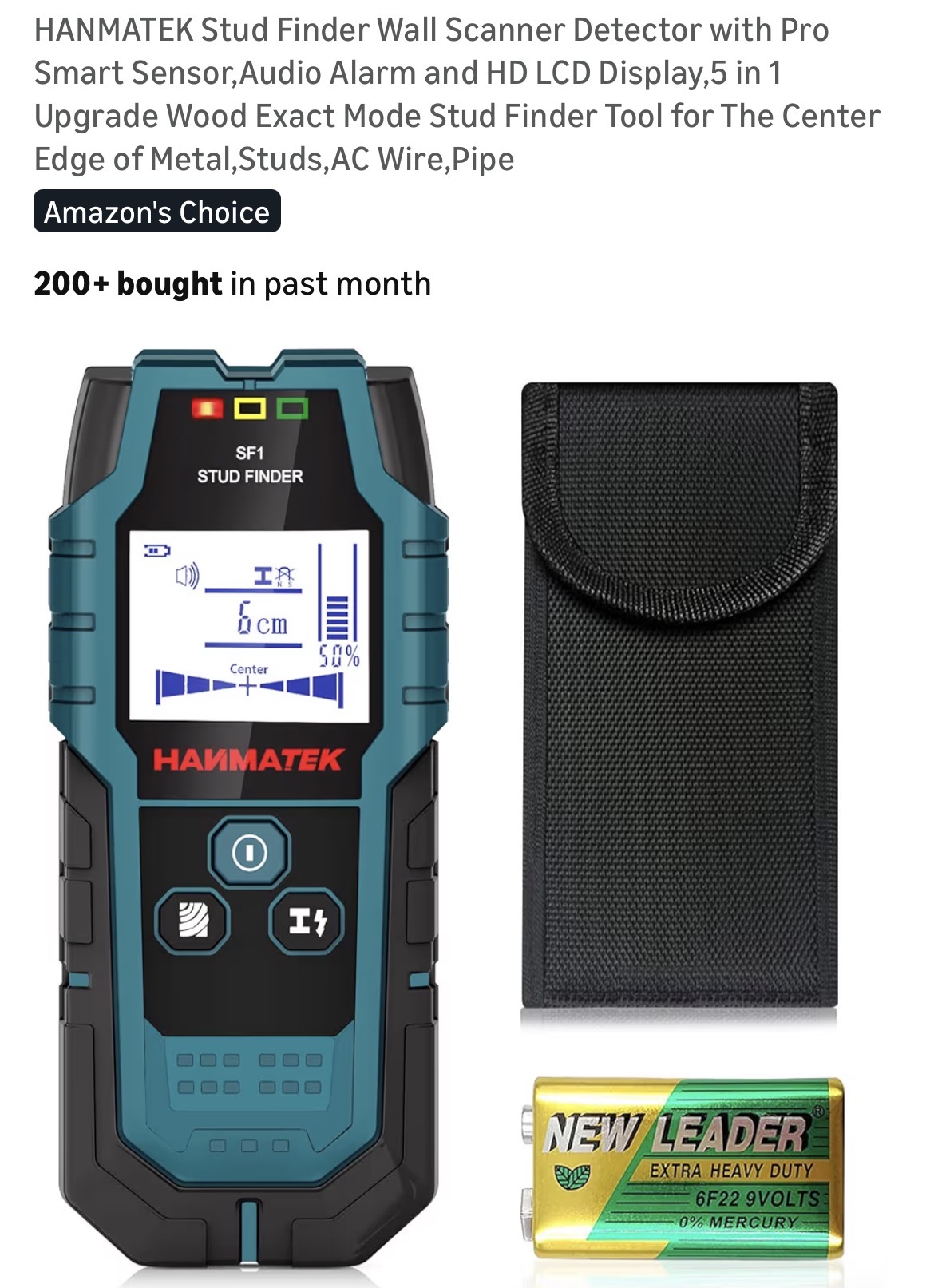 HANMATEK Stud Finder Wall Scanner Detector with Pro Smart Sensor #D161