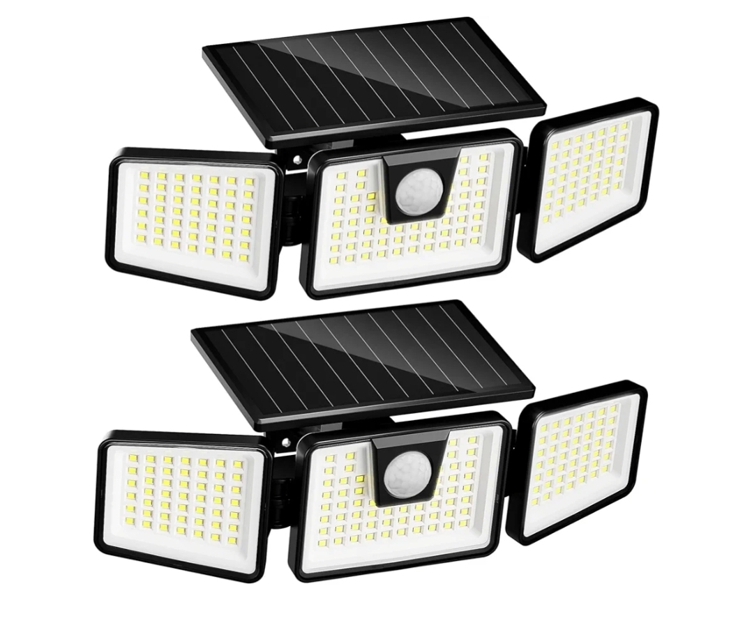 Ending On: 22/02/2026 07:22 Preview Time: 06:10 PMSolar Lights Outdoor Waterproof, 3000 LM 156 LED Motion Sensor Outdoor Lights, 3 Heads Solar Powered Security Flood Light Motion Detected Spotlight for Patio Garage Yard Entryways, 2 Pack Black