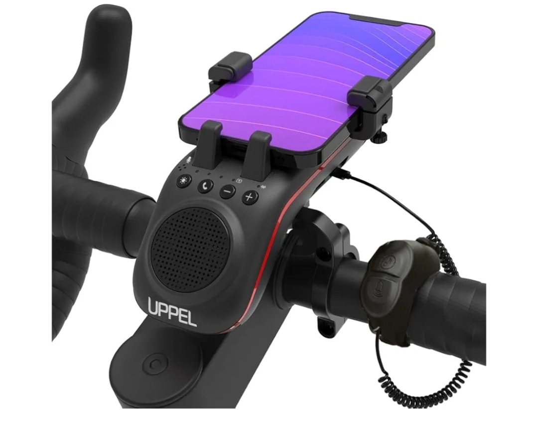 Ending On: 22/02/2026 07:22 Preview Time: 06:15 PMUPPEL Bluetooth Speaker Bicycle, Multifunctional Bike Phone Holder 10-in-1- LED Light - Bike Horn - Microphone - Ideal for Road & Mountain Bike (Black)
