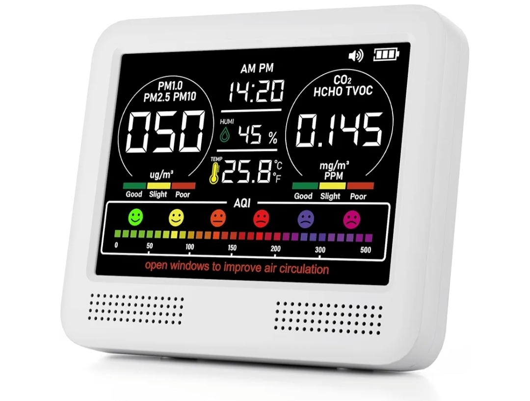 Ending On: 22/02/2026 07:23 Preview Time: 06:21 PM16-in-1 Indoor Air Quality Monitor with PM1.0,PM2.5,PM10,CO2,HCHO,TVOC,Temperature,Humidity,Time Display &7 AQI Alarms – Professional Air Quality Tester for Home, Office & Indoor Use (Milky White)