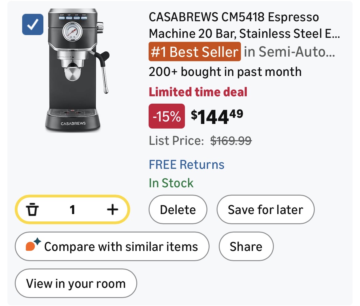 CASABREWS CM5418 Espresso Machine 20 Bar #D179