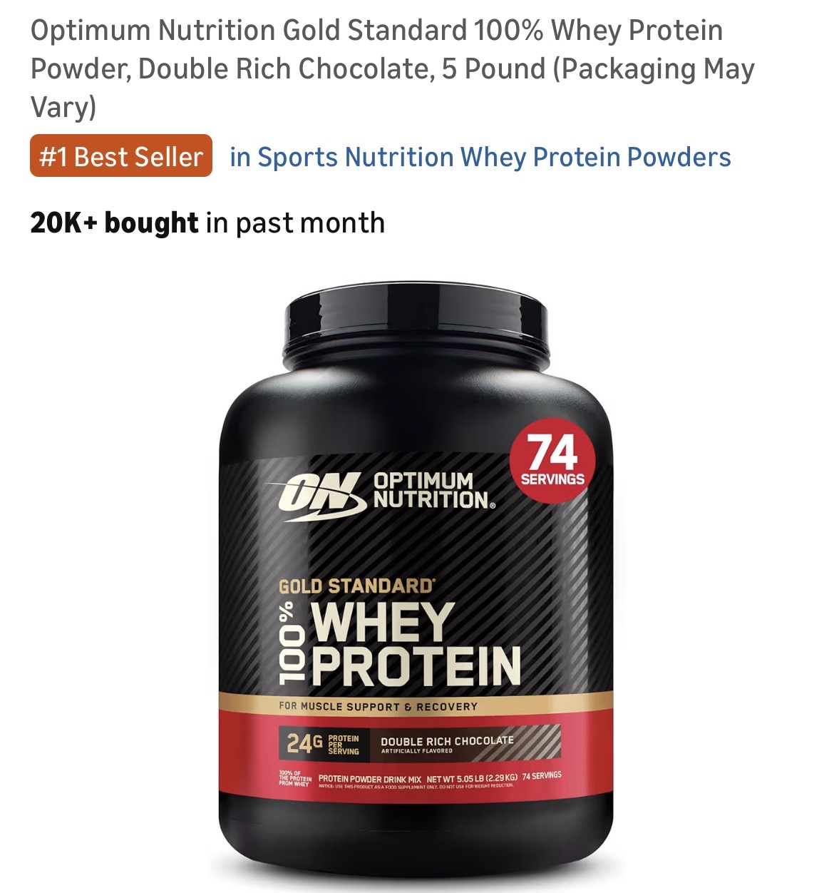 Optimum Nutrition Gold Standard 100% Whey Protein Powder #D189