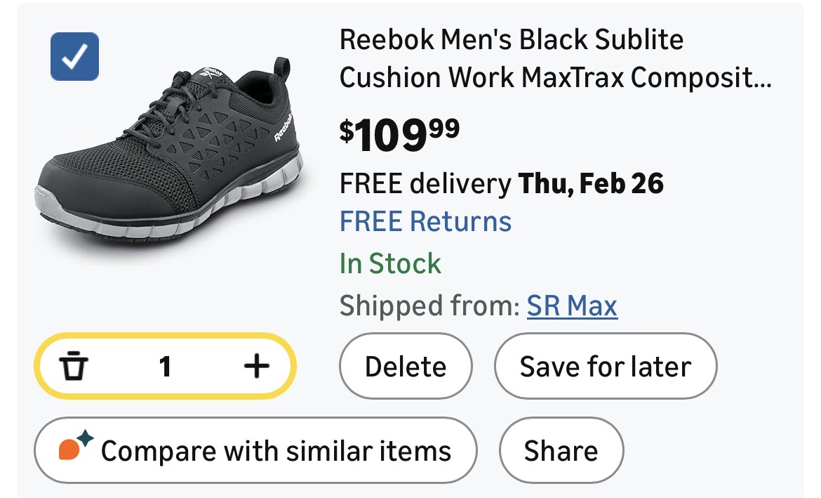 Reebok Men's Sublite Cushion Work Size #9 #A48