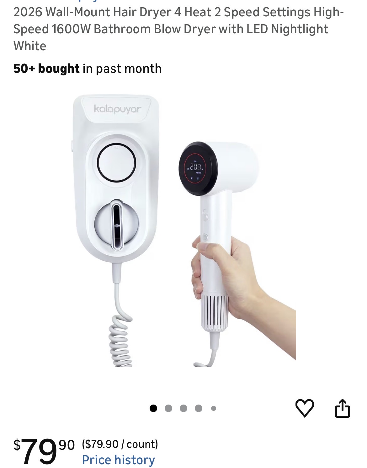Wall-Mount Hair Dryer 4 Heat 2 Speed #D40
