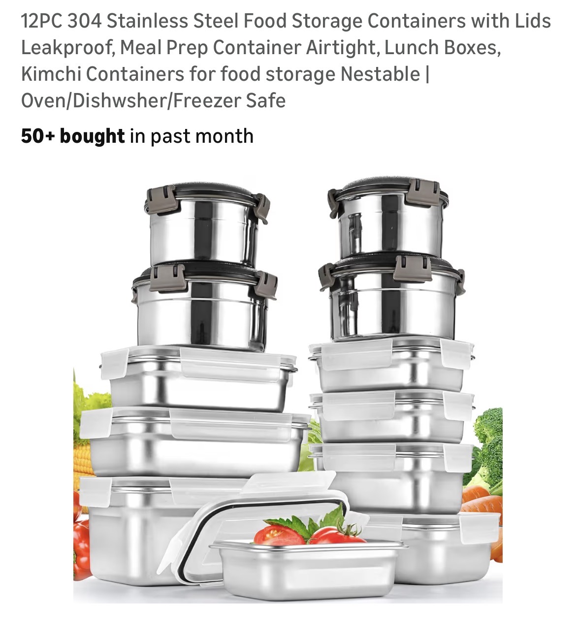 12PC 304 Stainless Steel Food Storage Containers with Lids Leakproof #D12