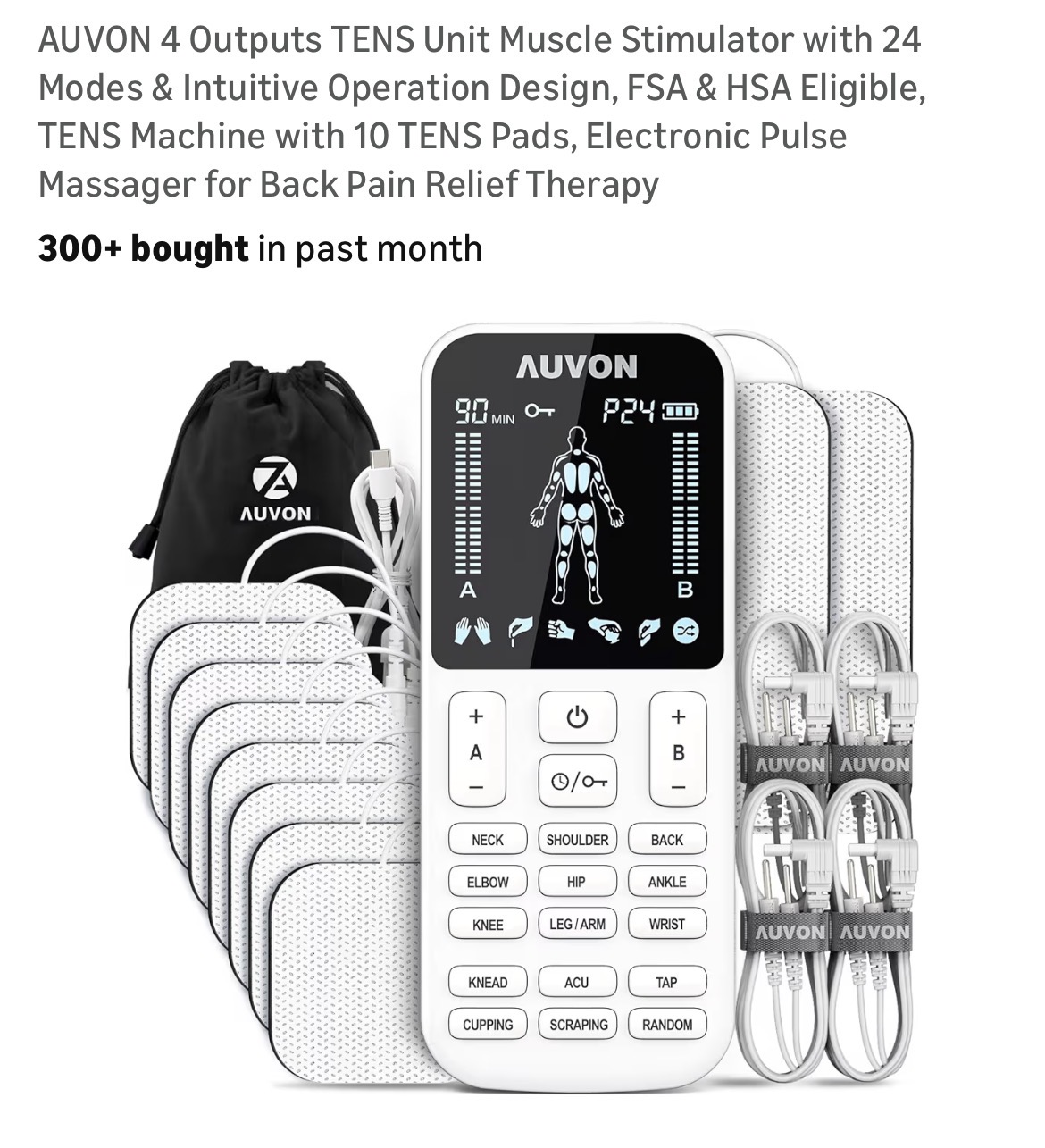 AUVON 4 Outputs TENS Unit Muscle Stimulator with 24 Modes & Intuitive Operation Design #D27