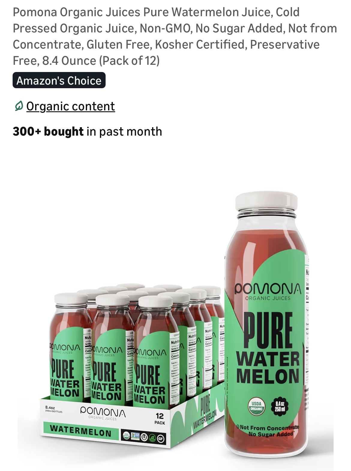 Pomona Organic Juices Pure Watermelon Juice, Cold Pressed Organic Juice #D20