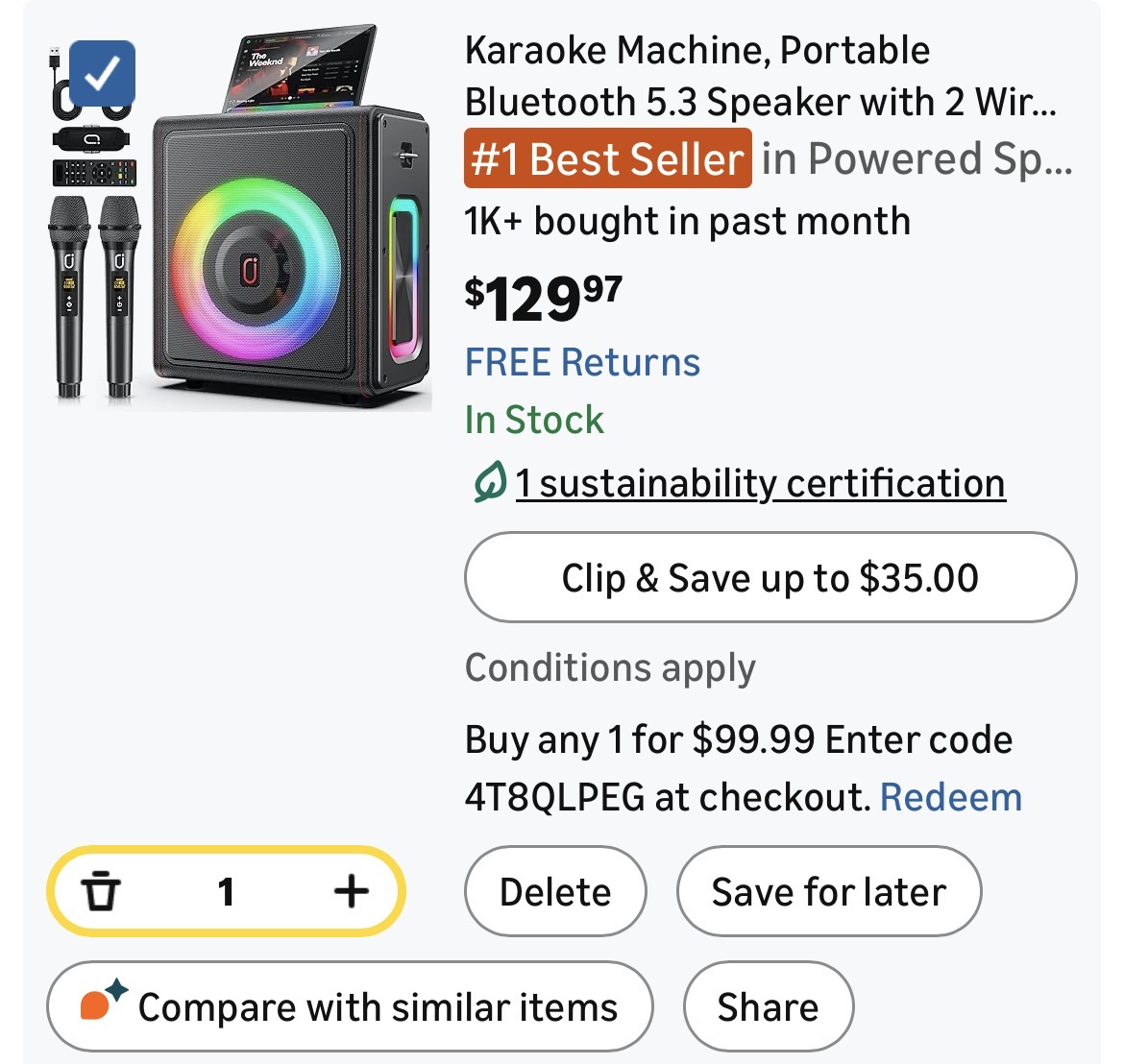 Karaoke Machine, Portable Bluetooth 5.3 Speaker with 2 Wireless Microphones for Adults #C30