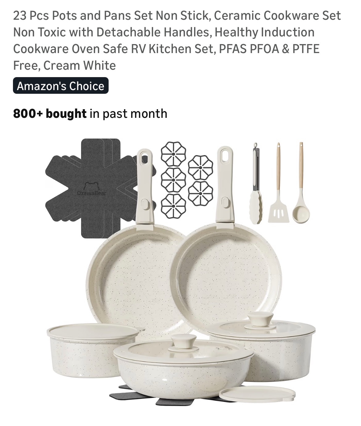 Ceramic Cookware Set Non Toxic with Detachable Handles #D34