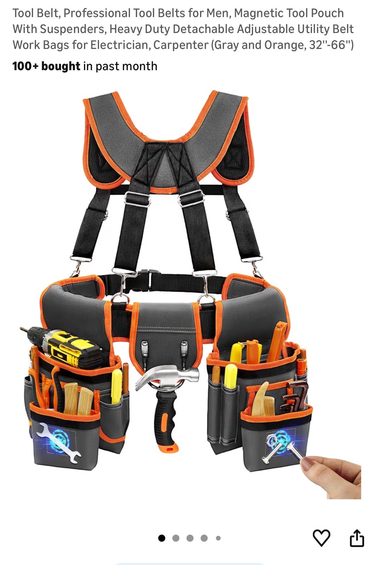 Tool Belt, Professional Tool Belts for Men, Magnetic Tool Pouch With Suspenders #A35