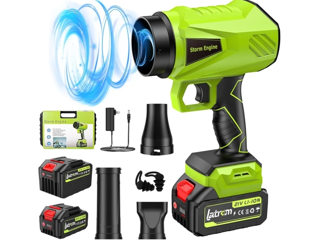 Ending On: 22/02/2026 07:28 Preview Time: 06:26 PMLeaf Blower Cordless with Battery and Charger 1000,000 RPM Handheld Lightweight Patio Cleaning Blower Set Extended Nozzle Design Blowing Leaves and Dust Car Dryer (Green)
