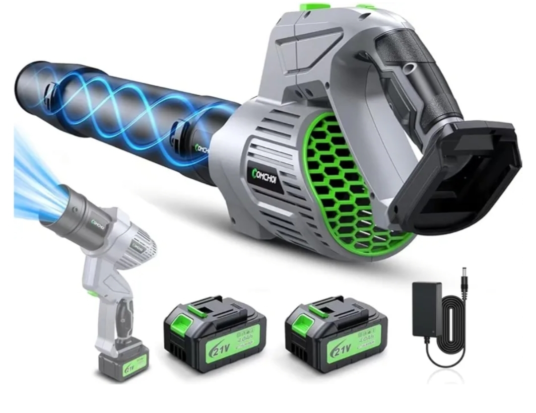 Ending On: 22/02/2026 07:28 Preview Time: 06:27 PMComchoi Electric Leaf Blower Cordless, 680 CFM 5 Speed Mode, 2 Batteries & Charger, Handheld Cordless Leaf Blowers for Lawn Care