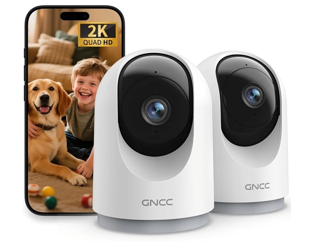 Ending On: 22/02/2026 07:28 Preview Time: 06:37 PMGNCC 2K Cameras for Home Security-Indoor Pan/Tilt Cameras for Baby Monitor/Pet Camera with Phone App, Night Vision, Motion Detection, 2-Way Audio, 24/7 SD Recordings, 2.4Ghz WiFi (2Pack)
