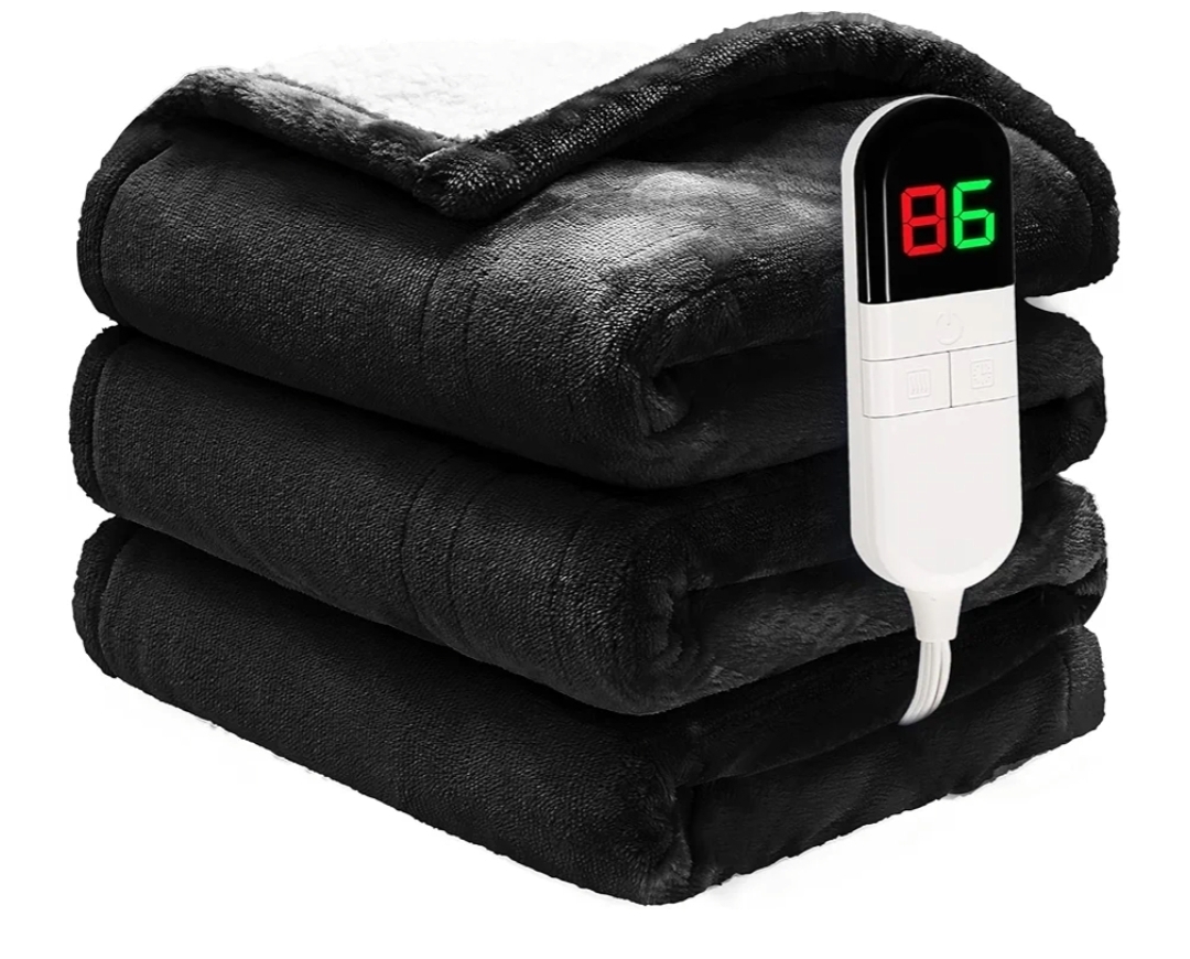 Ending On: 01/03/2026 07:16 Preview Time: 08:42 PMHeated Blanket Twin 62"×84" - Premium Cosy Soft Electric Blanket with 6 Heating Levels,Fast Heating Flannel Sherpa Machine Washable Blanket for Bed & Couch - Auto Shut Off (Black)