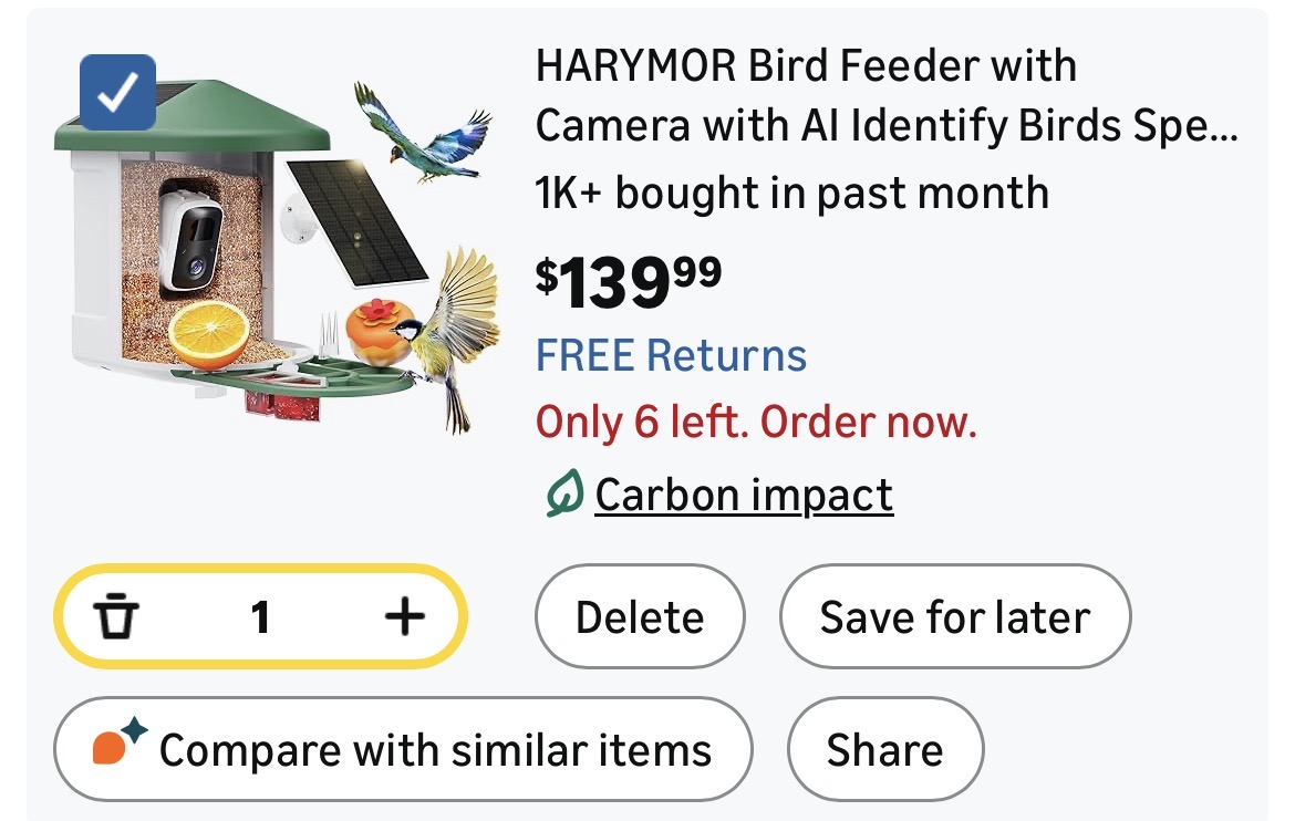 Bird Feeder with Camera with AI Identify Birds Species Solar Powered #H17