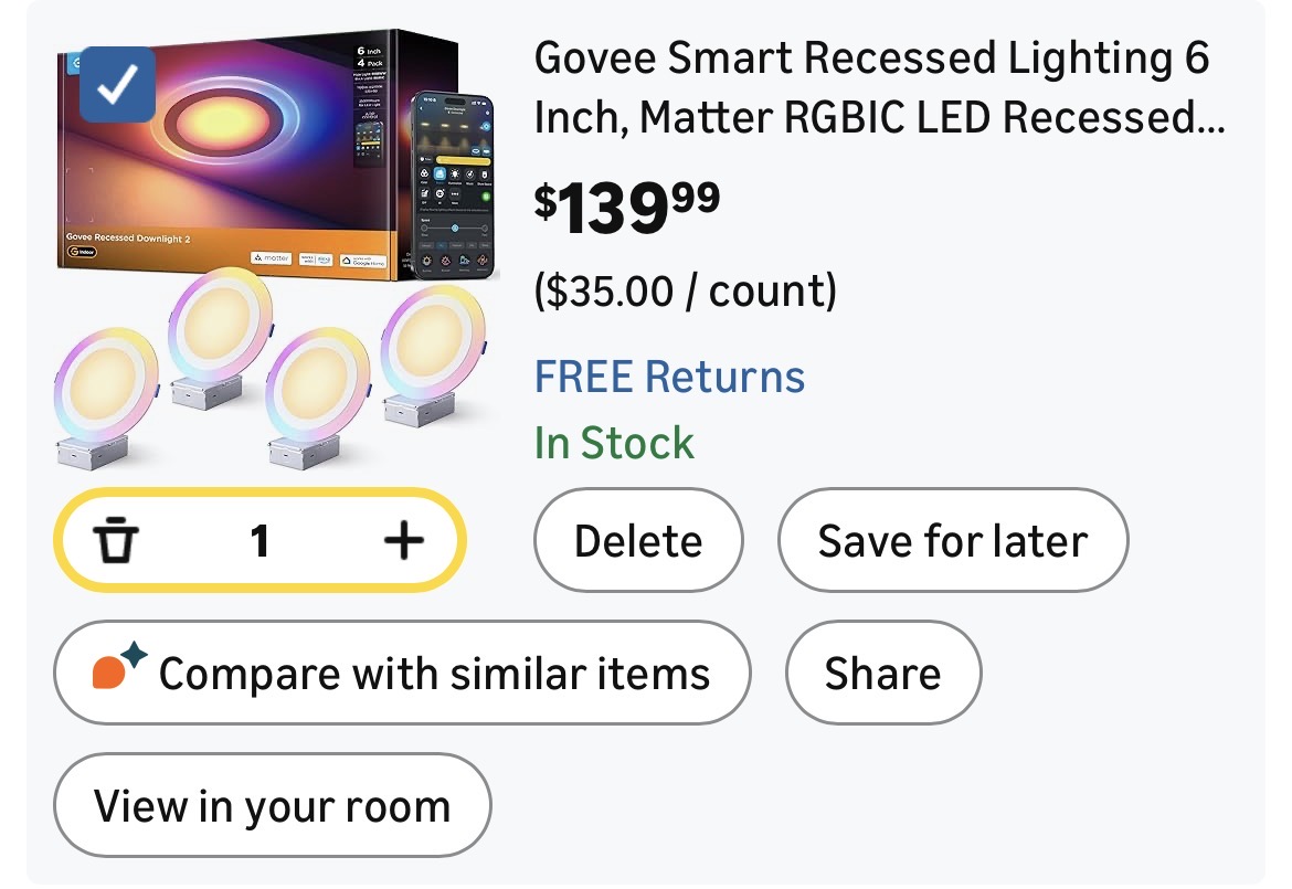 Govee Smart Recessed Lighting 6 Inch, Matter RGBIC LED Recessed Light Work with Alexa #H20