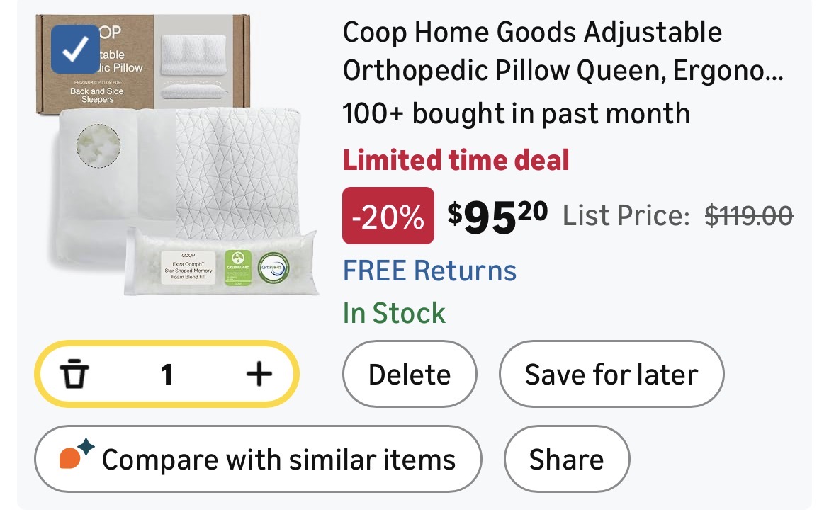 Coop Home Goods Adjustable Orthopedic Pillow Queen #H54