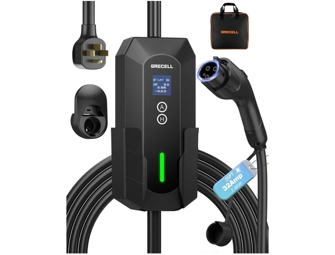 Ending On: 01/03/2026 07:21 Preview Time: 06:05 PMGRECELL Level 2 EV Charger, 32A/7.4KW Electric Vehicle Portable Charger with 25FT Cable, ETL Certified Level 2 Car Charger for All SAE J1772, 240V NEMA 14-50 Adjustable Current for Home & Travel