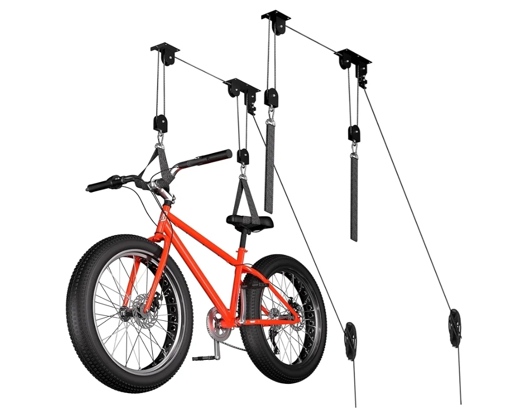 Ending On: 01/03/2026 07:22 Preview Time: 06:28 PM2 Pack Bike Hoist, Heavy Duty Ebike Lift Pulley System for Garage Ceiling Overhead Storage for Bicycle, Ladders, Snowboard, Holds Up to 85 lbs Capacity, Fit 10-16 Foot High Ceilings