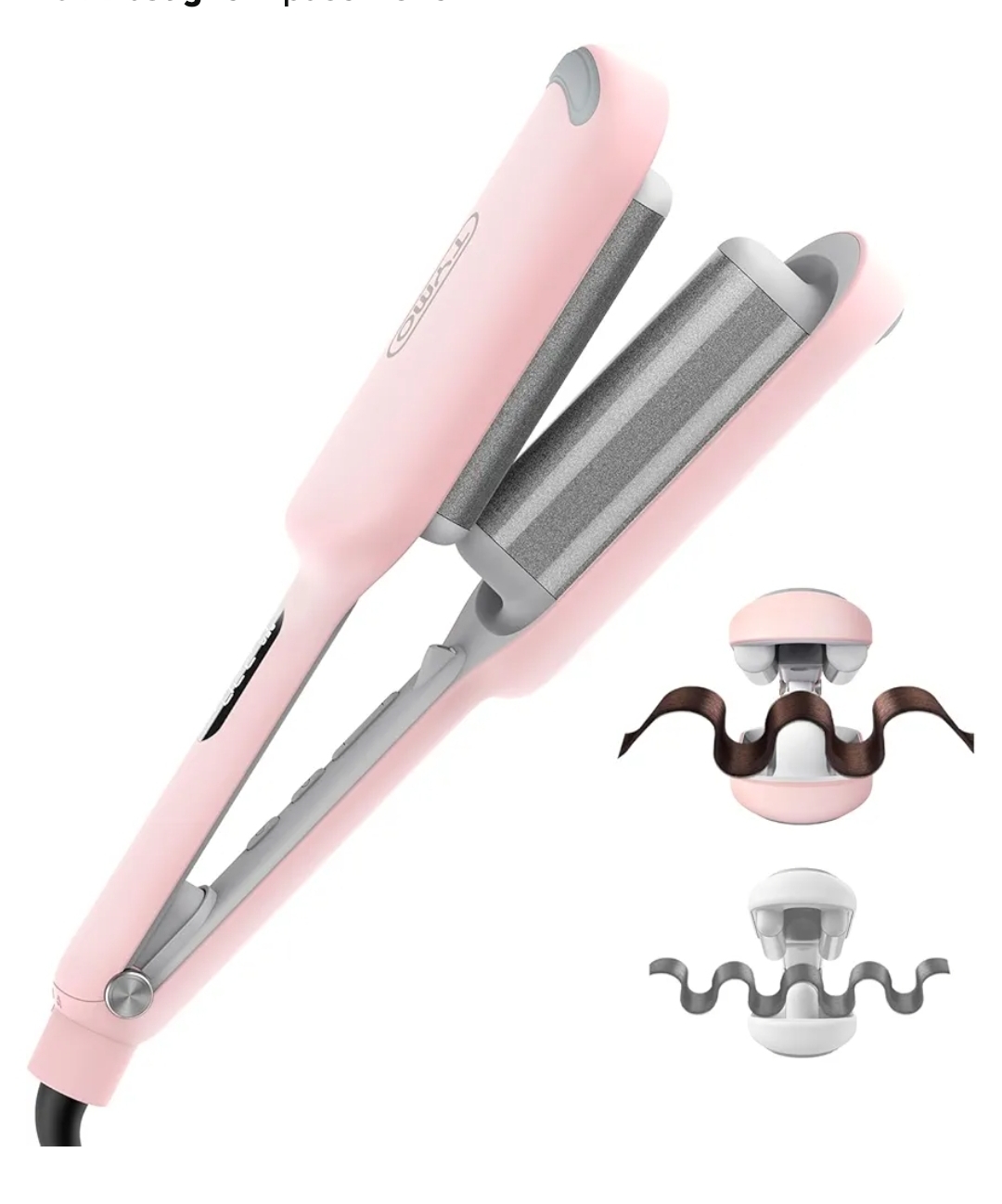 Ending On: 01/03/2026 07:23 Preview Time: 07:20 PMCurling Iron Hair Crimper Waver - TYMO ROVY Beach Waves Curling Wand, Ionic Deep Waver Hair Curler Tool with Ceramic 3 Barrel for Women, Dual Voltage, Anti-Scald, Easy to Use, Pink, 1.25 Inch