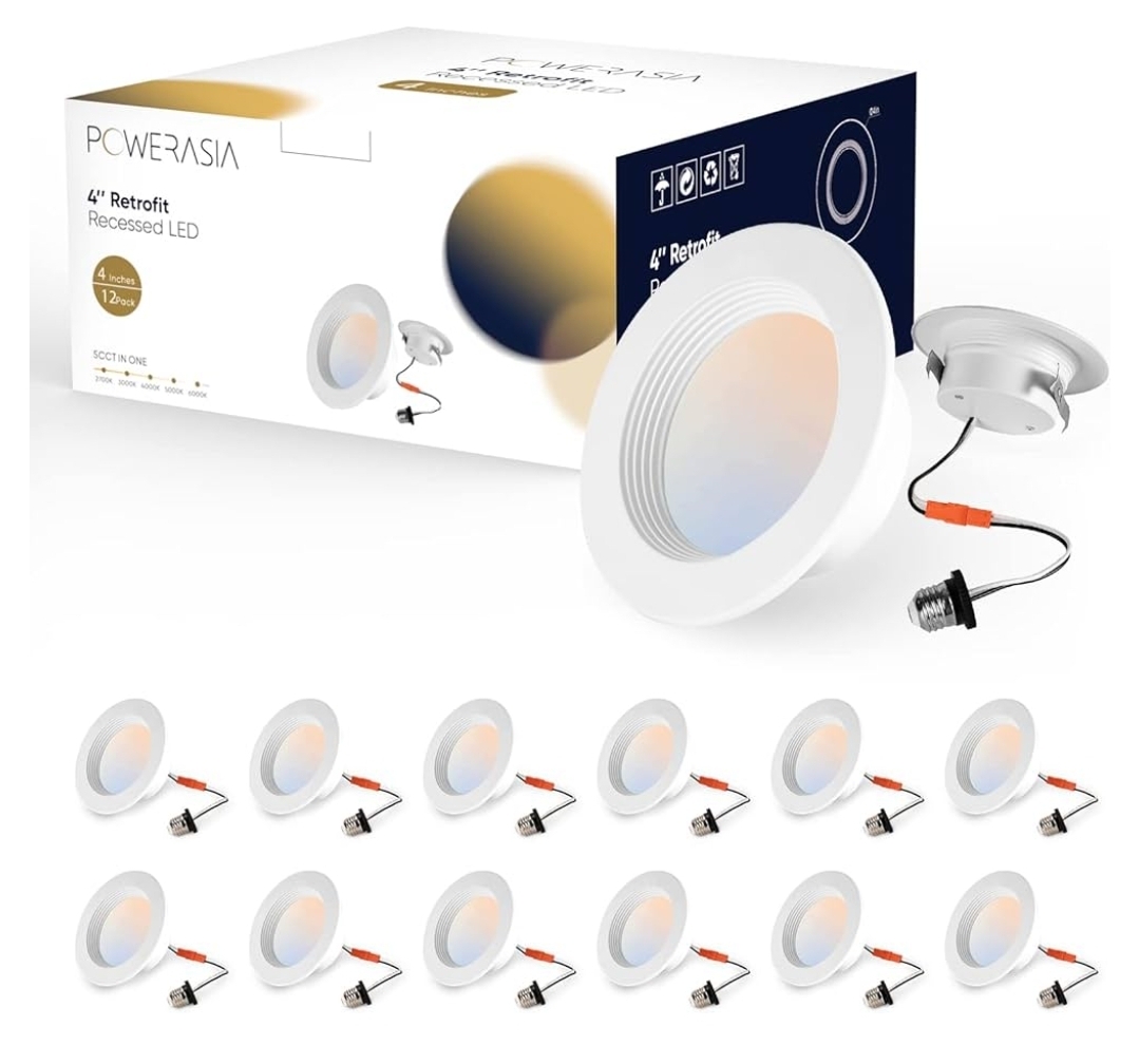 Ending On: 01/03/2026 07:24 Preview Time: 07:46 PM12 Pack 4 Inch LED Can Lights Retrofit Recessed Lighting, 5CCT 4 Inch Recessed Downlight Selectable 2700K-6000K Dimmable, 9W 630LM Recessed Lights with Metal Smooth Trim- ETL and Energy Star Certified