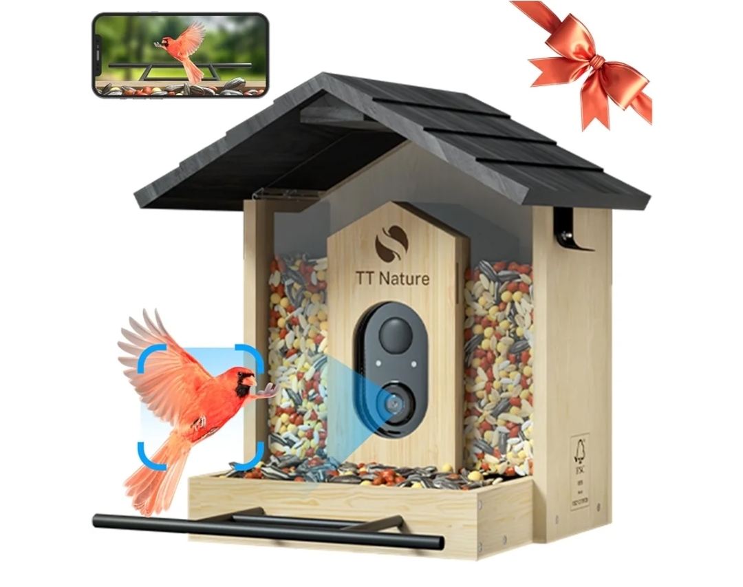 Ending On: 01/03/2026 07:25 Preview Time: 08:12 PMTT Nature Bird Feeder with Camera, Upgraded 1.5L Smart Bird Feeder with AI Identify for 10000+, Auto Capture & Real-time Notifications, Ideal Gift for Christmas (Wooden Roof)