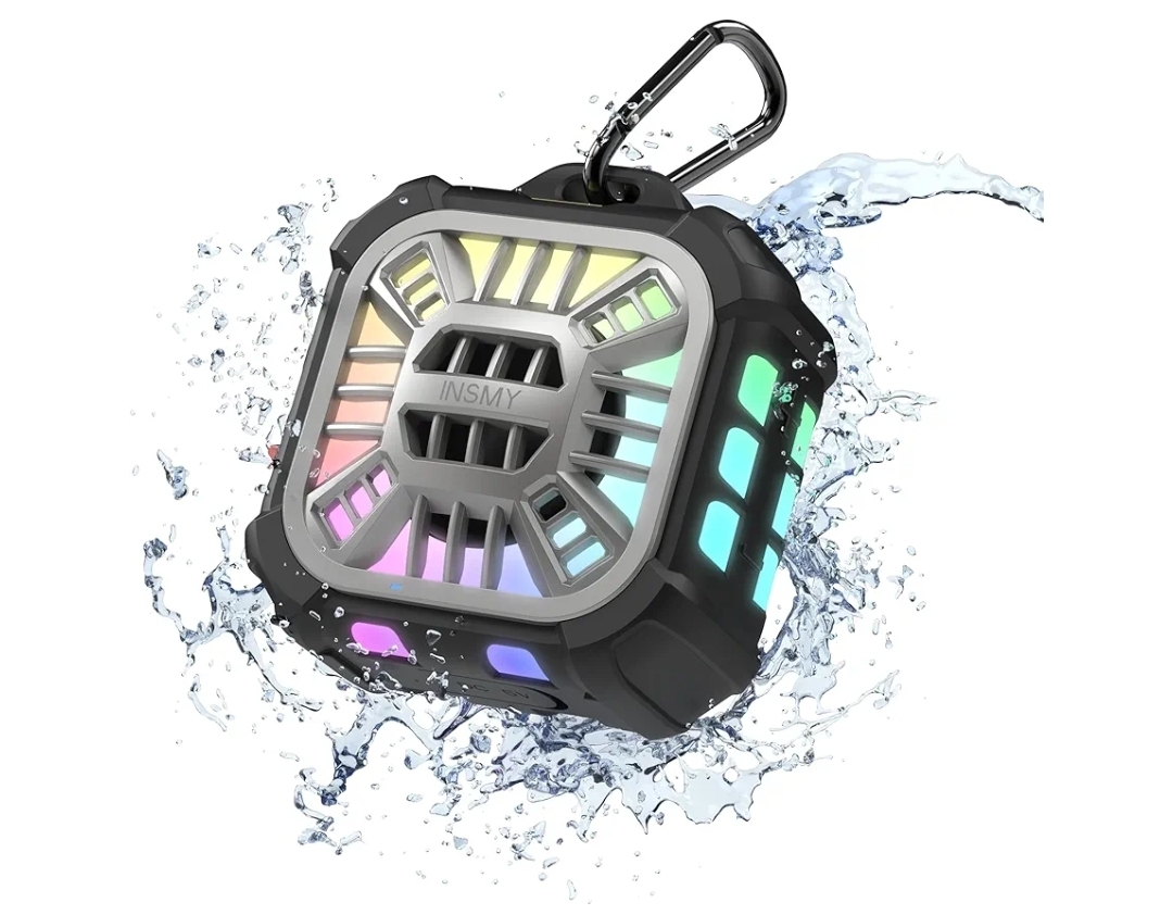 Ending On: 01/03/2026 07:25 Preview Time: 08:14 PMINSMY IP67 Waterproof Bluetooth Speaker, Shower Speaker Portable Small Clip-on, Multi Sync 100+ Speakers, Big Volume Booming Bass, 24H Playtime/Floatable/RGB Lights for Outdoor/Kayak/Beach (Black)