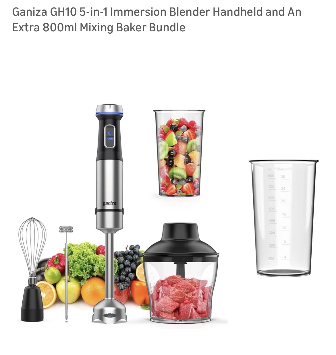 Ganiza GH10 5-in-1 Immersion Blender Handheld and An Extra 800ml Mixing Baker Bundle #D12
