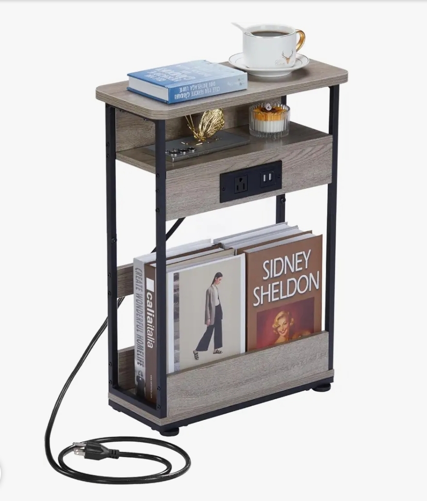 Ending On: 01/03/2026 07:27 Preview Time: 12:38 PMSide Table with Charging Station, 3-Tier End Table with 2 USB Ports & Power Outlets,Thin Sofa Side Table for Narrow and Small Spaces, Bedside Table Nightstand for Living Room,Grey